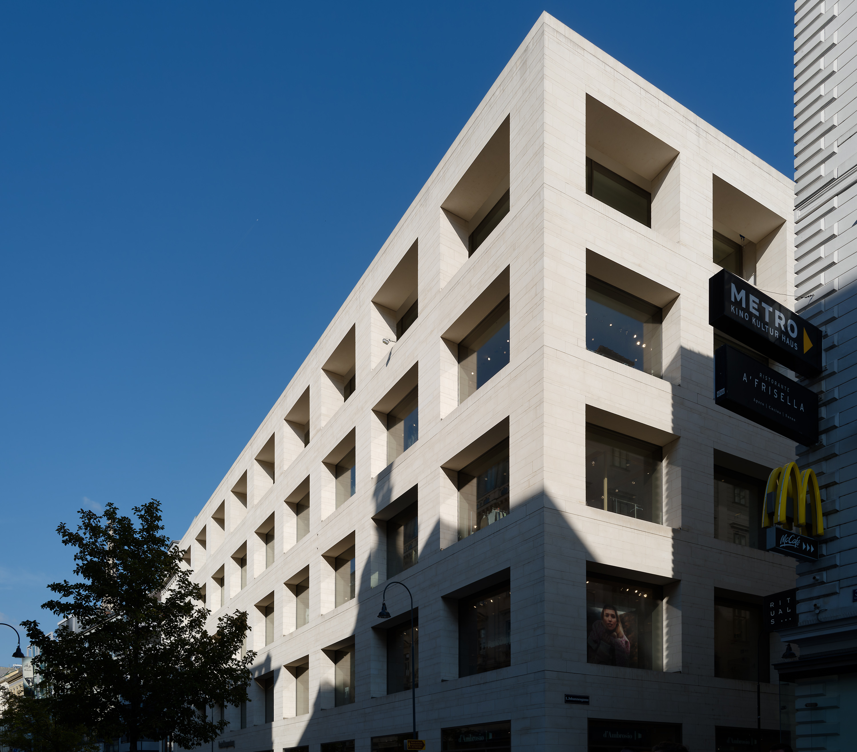 Although the sun was bright the shadows were long at 4pm, and I noticed for the first time the geometrical pattern of this department store. If you look carefully you can see the spire of Stefansdom behind the tree.