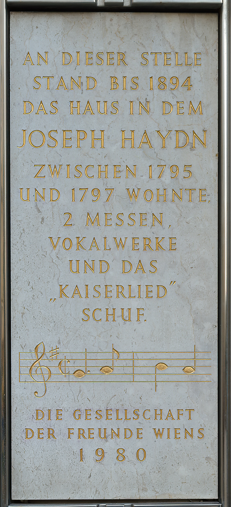 On the other side of the square are plaques to other famous inhabitants. The first is the composer, Joseph Haydn, who lived there for years in a building long since demolished. (A pity the engraver couldnt notate the music correctly!)