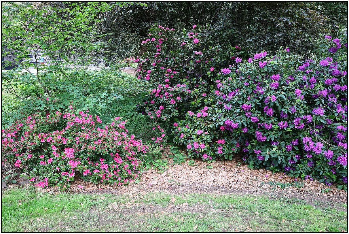 Photo No. 1 - We see rhododendron flowers mixed in with some other types. The window is short when we see these flowers in the spring. By now they must be all gone.