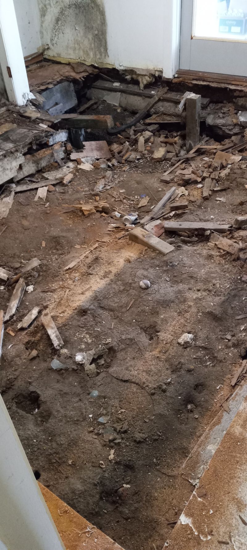 I ive in a century's-old farmhouse. Back then, they didn't use foundations when they built houses. Right now, my kitchen floor is collapsing, so I'm having to put in a new kitchen floor.