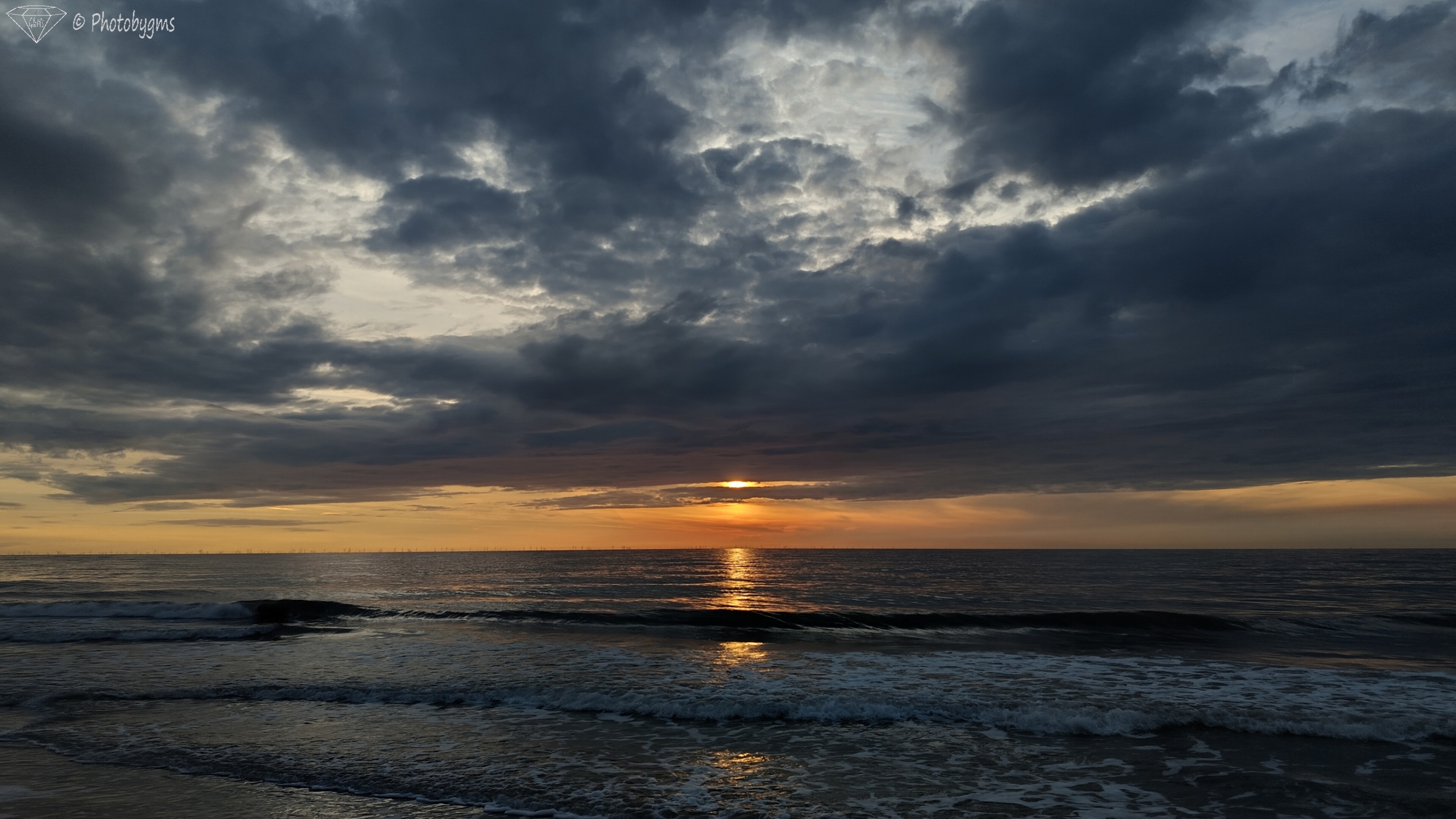 Beautiful...nicely captured with the clouds and the sun's reflection on the water.