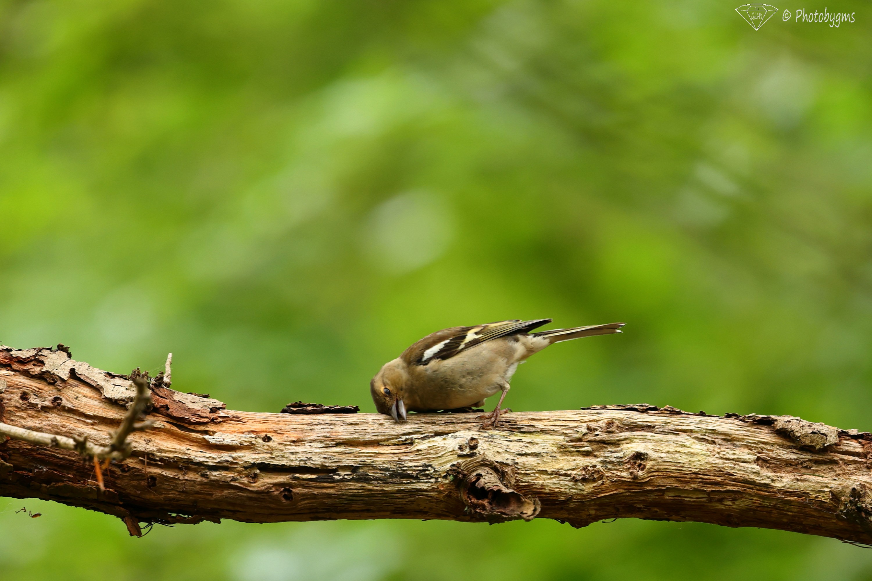 The Little bird is a female eurasian chaffinch If i'm not mistaken.