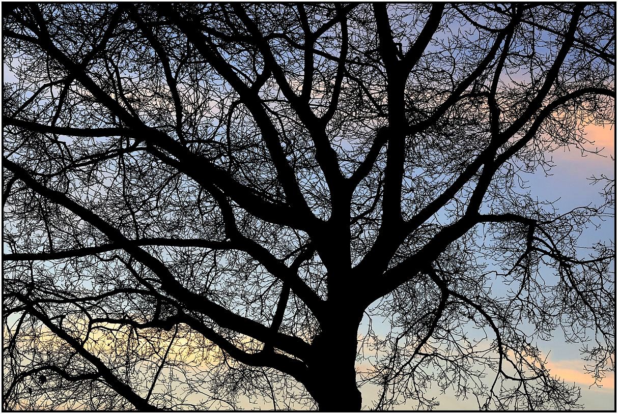 About three days ago I saw a tree with it's bare branches against an evening sky. I thought it looked neat. I hope you all do too.