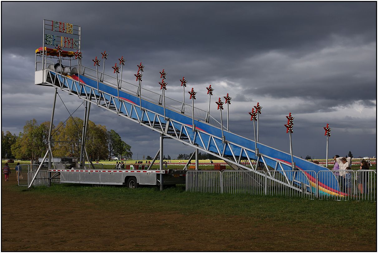 Photo No. 1 - What I liked about taking pictures of this slide, was the contrast that I was getting with the sun and the clouds. Can you see the bright light in the background in the tulip fields?