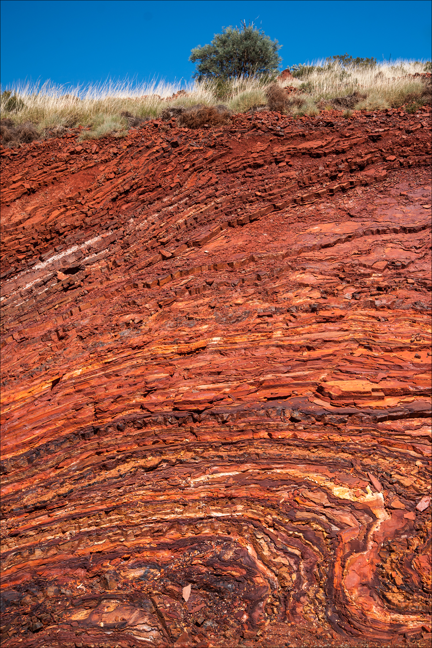 This is a fantastic shot. Like a slice cut deep into the earth with all those folded layers of "lava". The warm bright red colours are great, as you said, like the opposite of the cold blue in my Alpine shots.