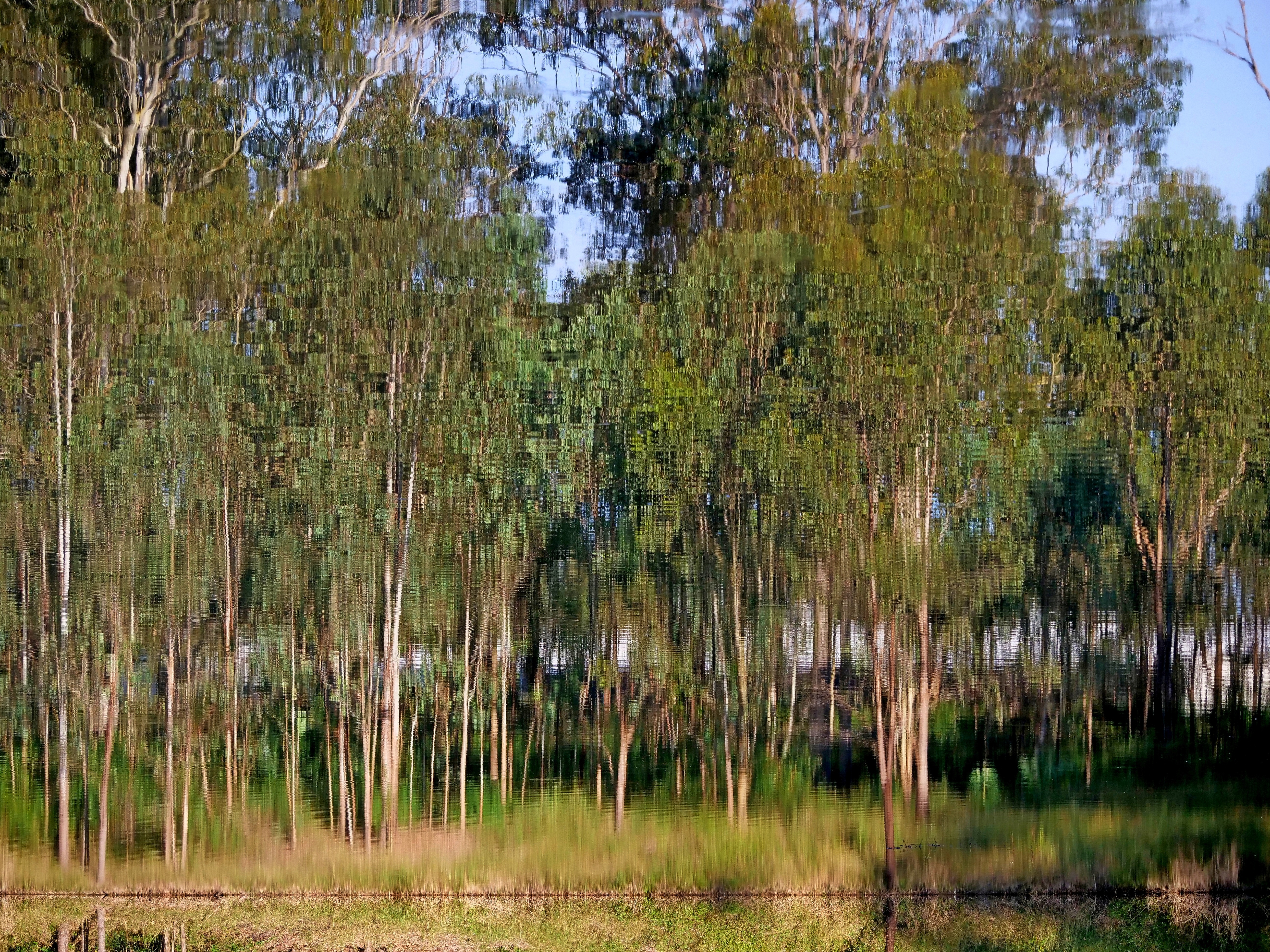 A little bit of scenery around a local dam on a still day. I wasn't sure whether to crop out the water real part at the bottom or leave it for reference.