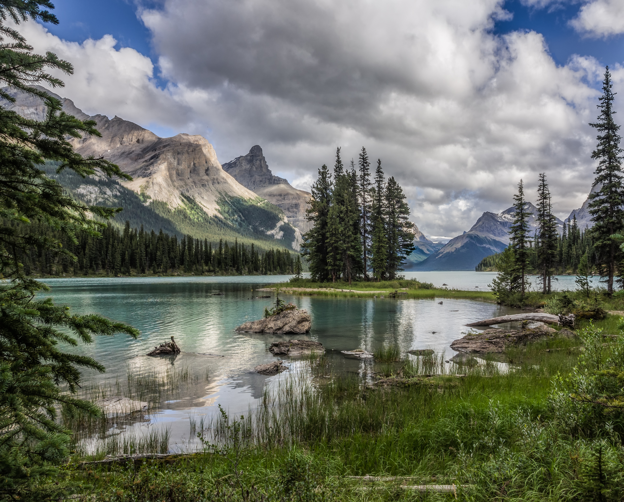 I was looking for one of my photos of Jasper NP in Alberta and ran across my little set of Maligne Lake. Spirit Island may be one of the prettiest places I've ever photographed. Unless you have exceptional hiking ability or kayaking skills, the only way to get there is via a speedy park service shuttle boat, about a 30 minute trip. The ranger lets you out in this gorgeous place and tells you to take all the pictures you want but be back at the dock in 5 minutes.