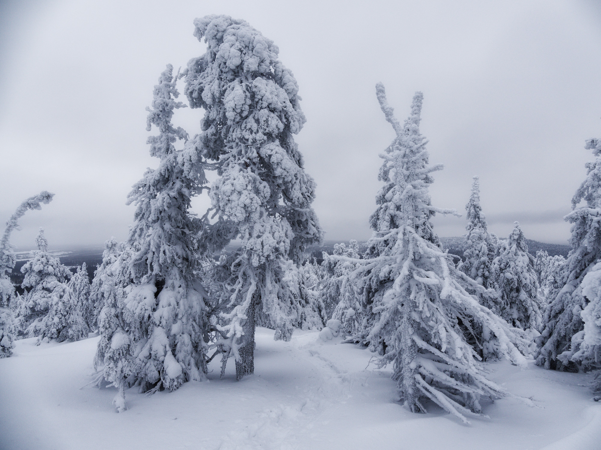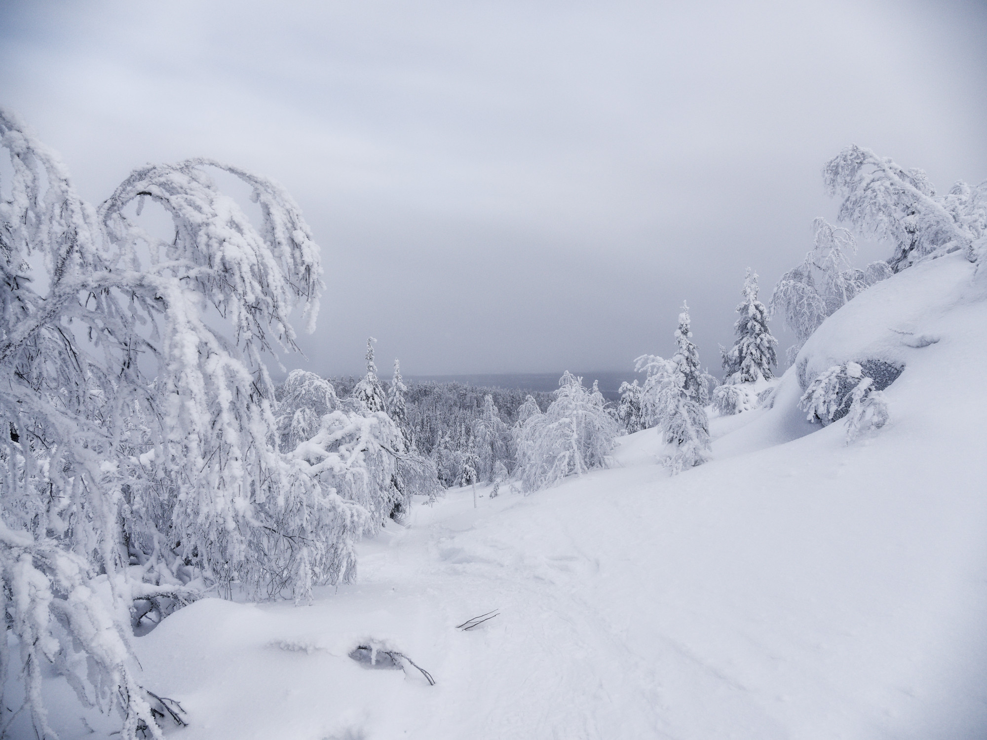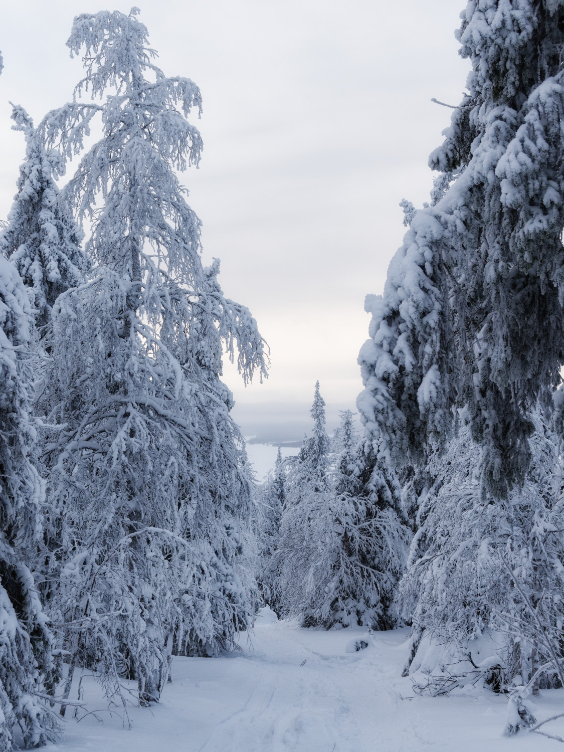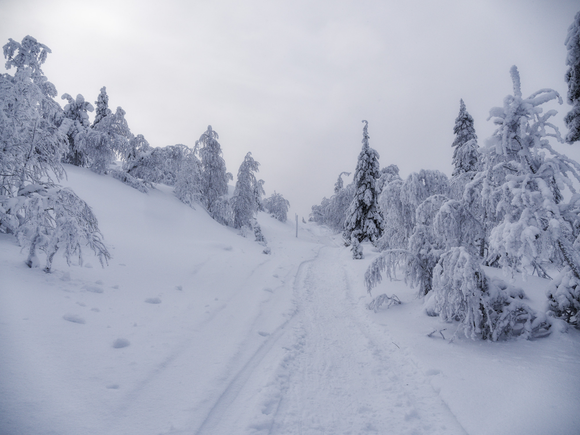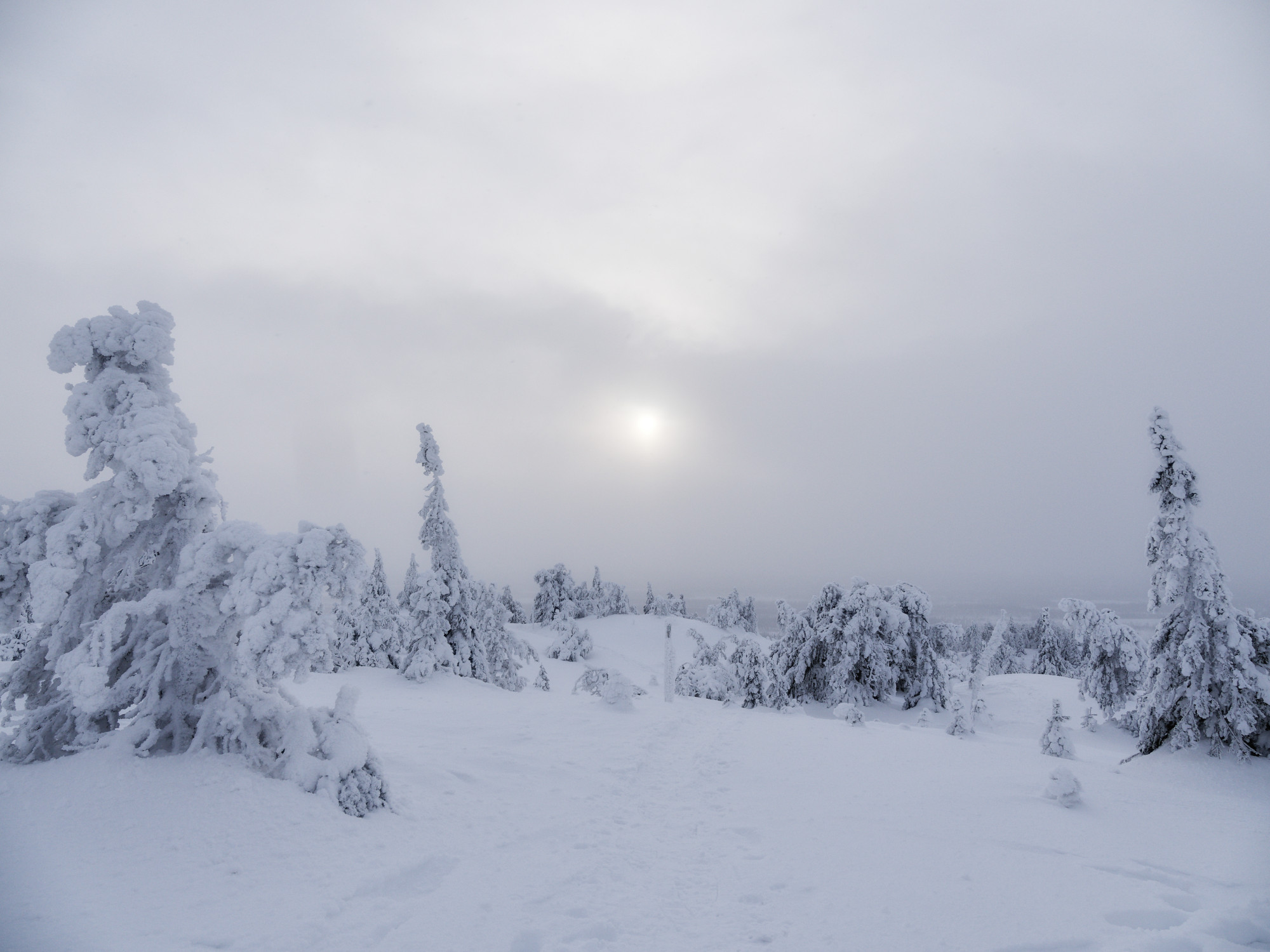 Shots from one climb to mountain on my last day of visiting Lapland. It was quite steep and constant climb over 200 meters of rise in 1.5km, not easy as we were using snowshoes, but views were well worth of it! 5 years ago storm break many trees and old road to top of mountain was closed due to danger and new road was created instead. If was relatively empty place, I saw only 2 groups of other people there, unlike some of more popular mountains.