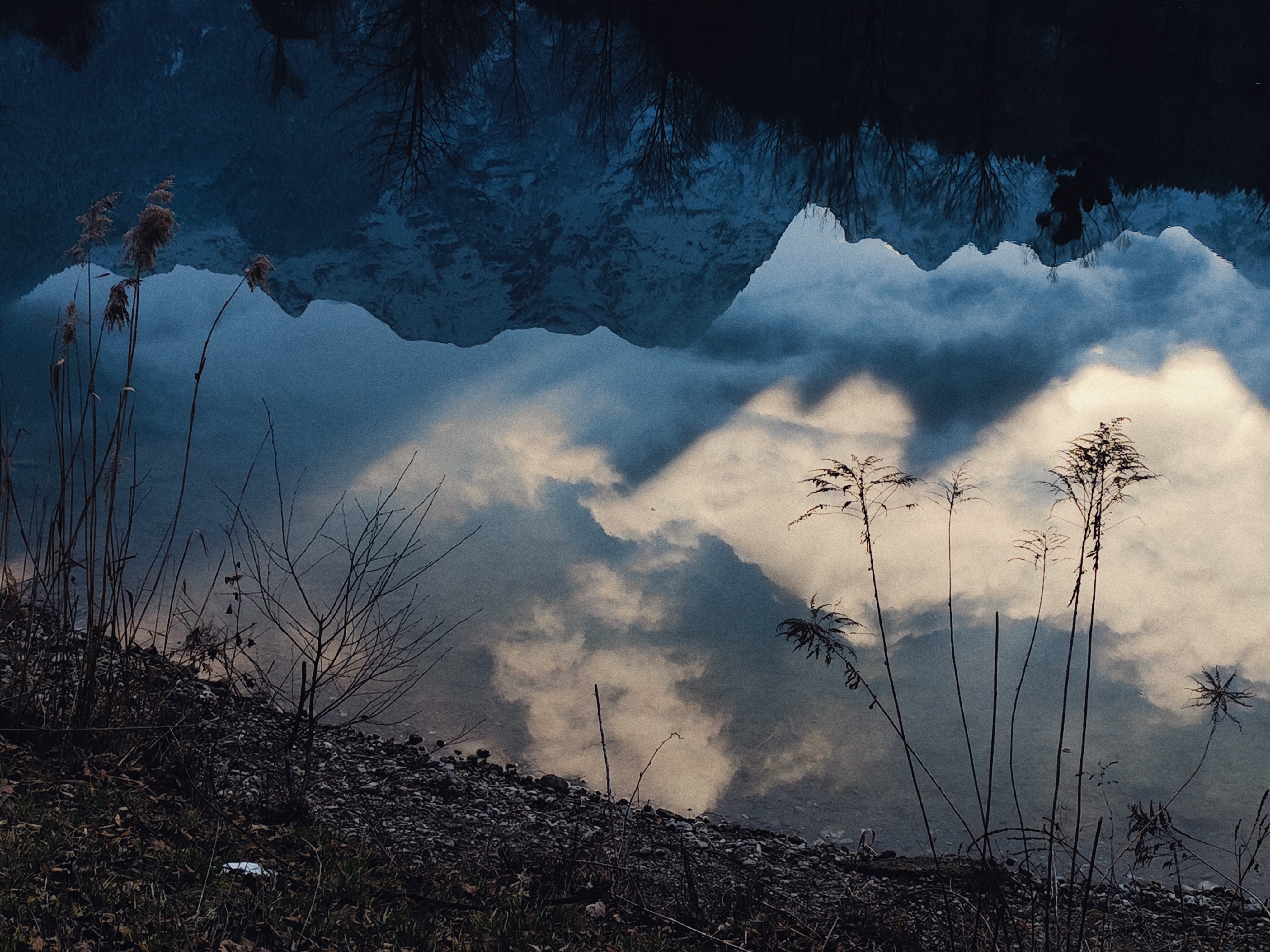 This picture was taken close to where I took the landscape foto 2 weeks ago. This was the result of another little stroll there. There's also a little lake on the way. The water is really turquoise and sometimes it's an almost perfect mirror. That day, the sun behind the mountains cast an evergrowing shadow of the peaks on the clouds and fog above the mountain. Giving the illusion of a second larger mountain behind it.