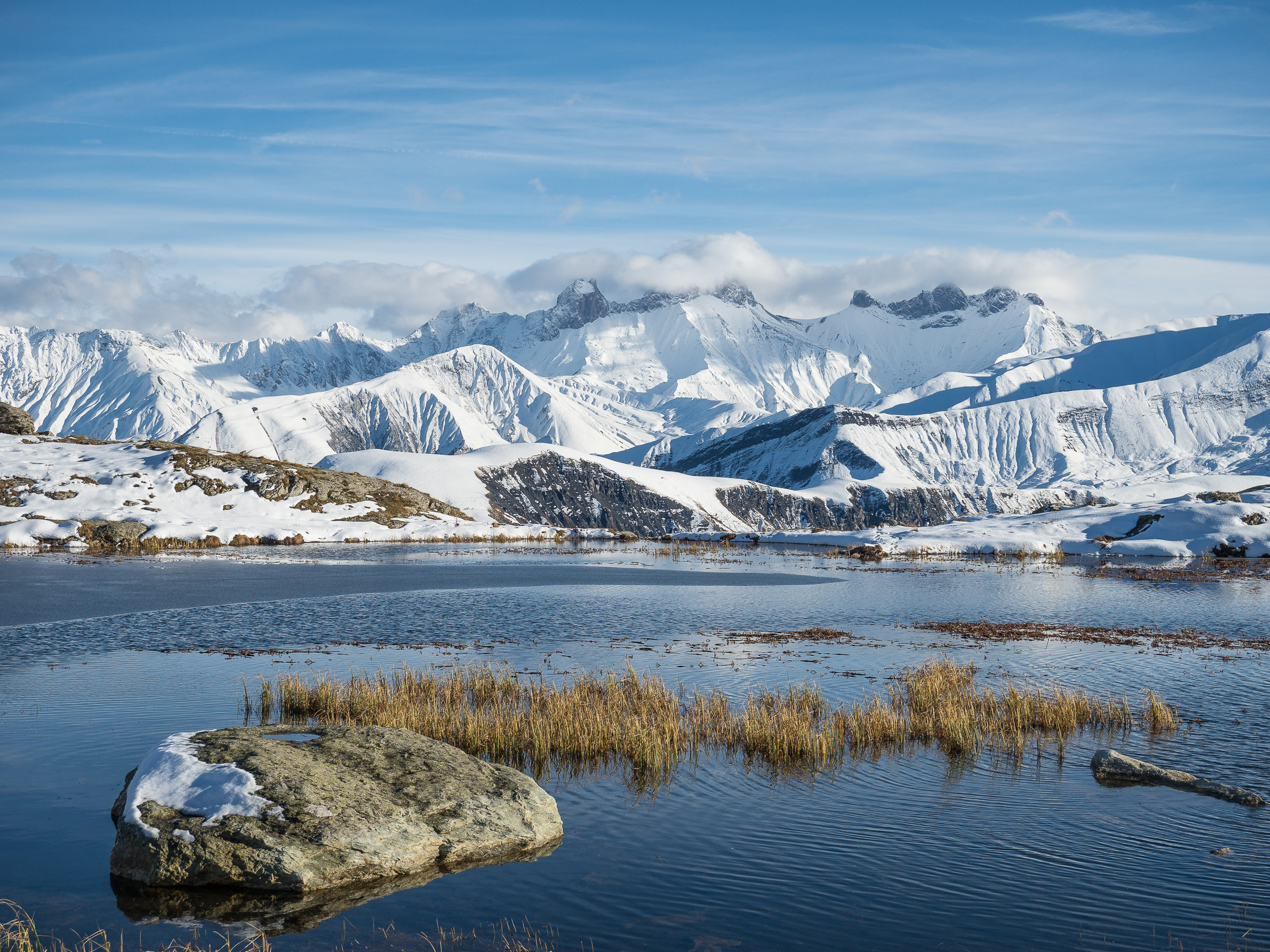 The views are more spectacular from the Valloire side and a bit more gentle from the Albiez side. Snow can happen anytime of year, though the small glacier between Albiez and La Meije is gone ...Lovely view of the lake