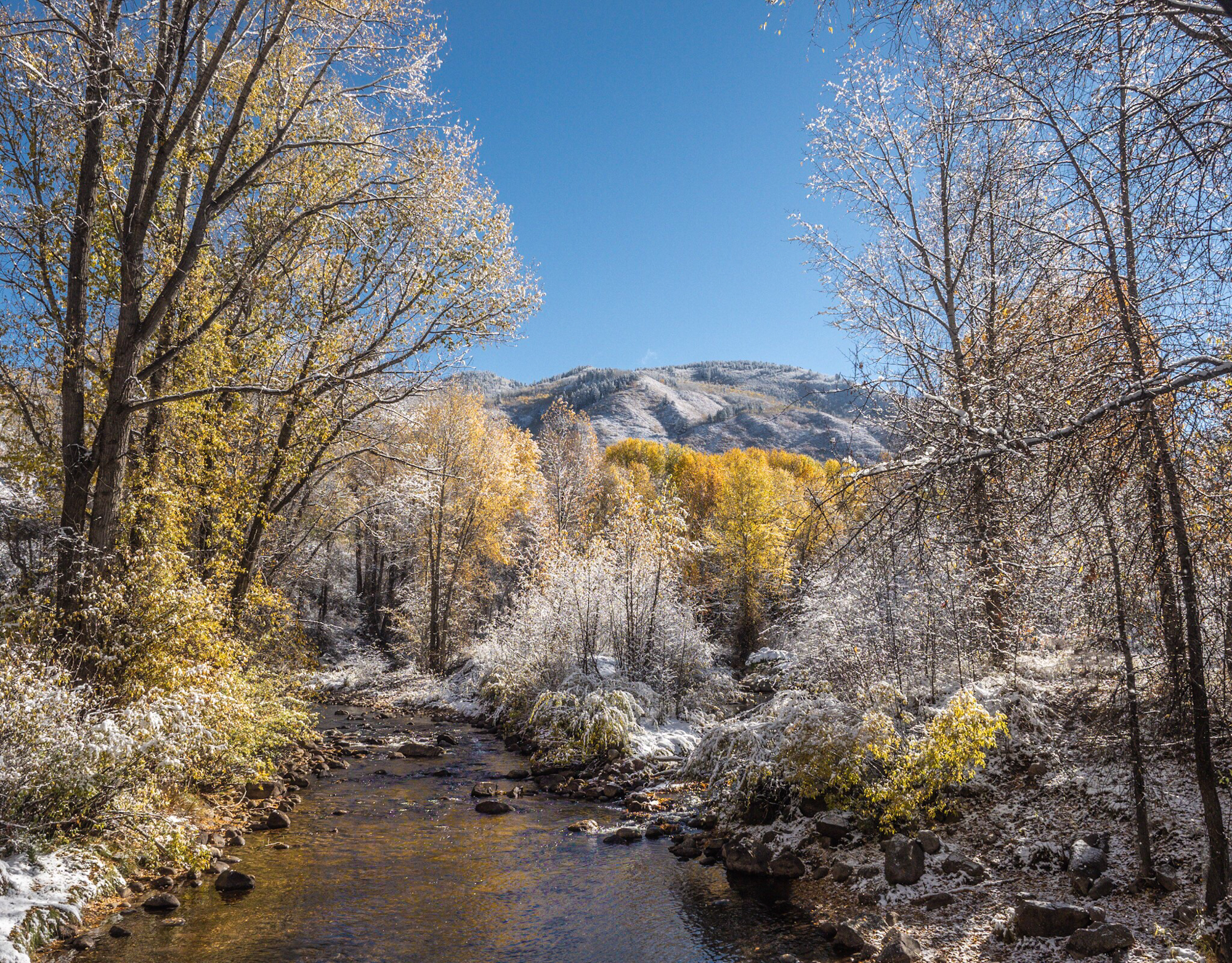 First snow of the season in Aspen, Colorado about this time of year, at the John Denver Sanctuary
