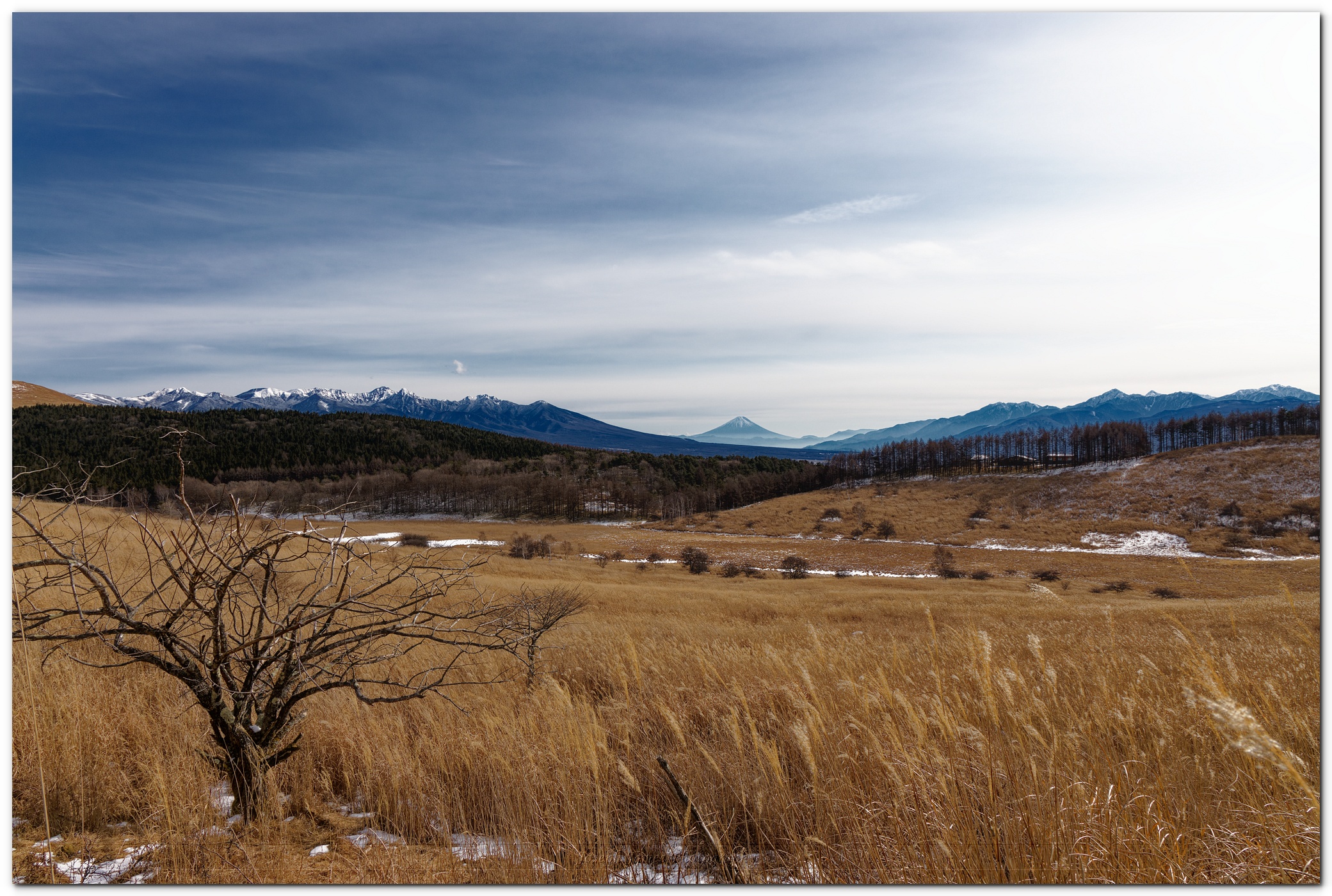 The chosen wide view includes the grasses on the meadow and a tree which both add depth to the image. A first sprinkling of snow adds some nice contrast to the landscape and tell us that it was fresh but still a pleasant day for hiking :-)
