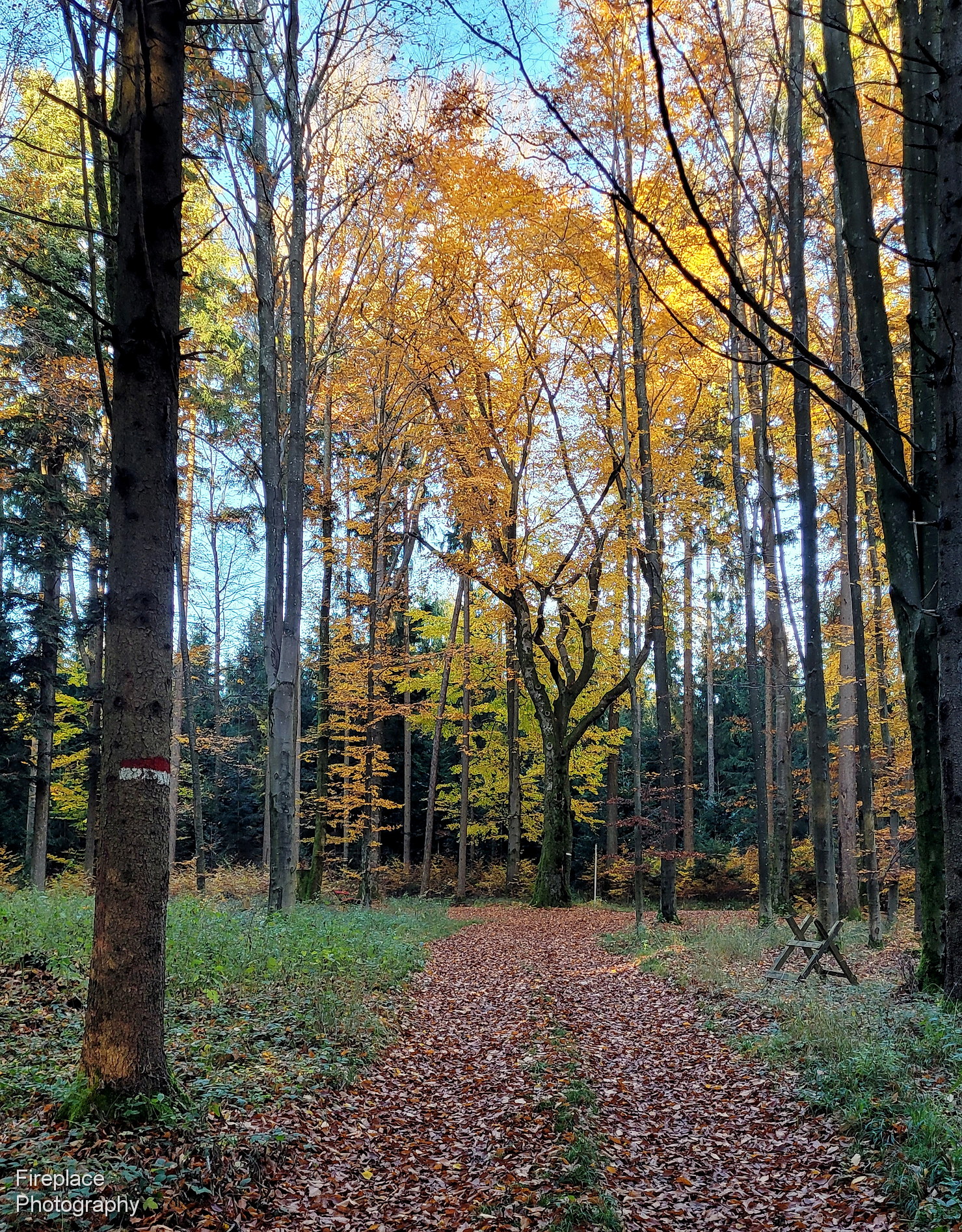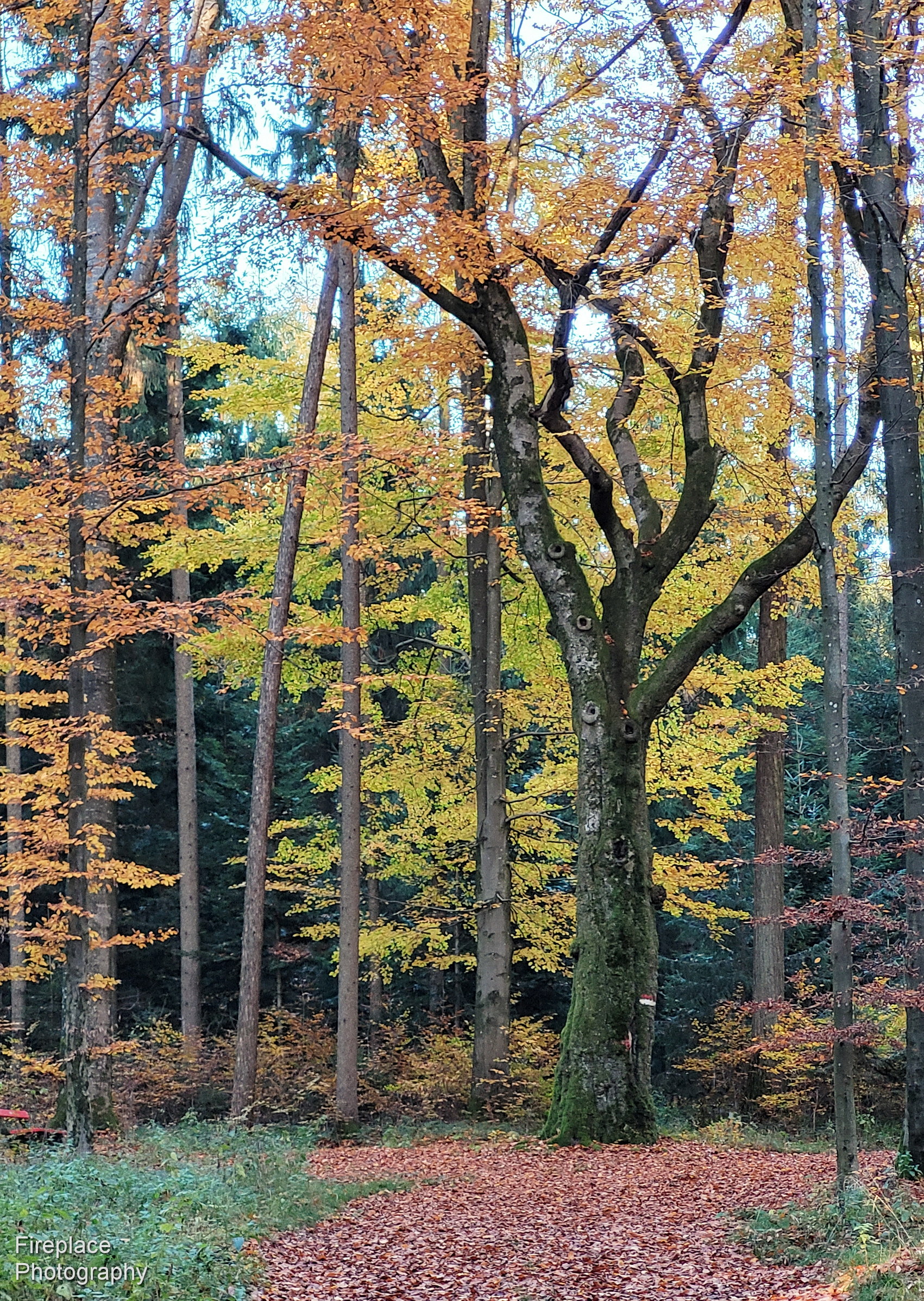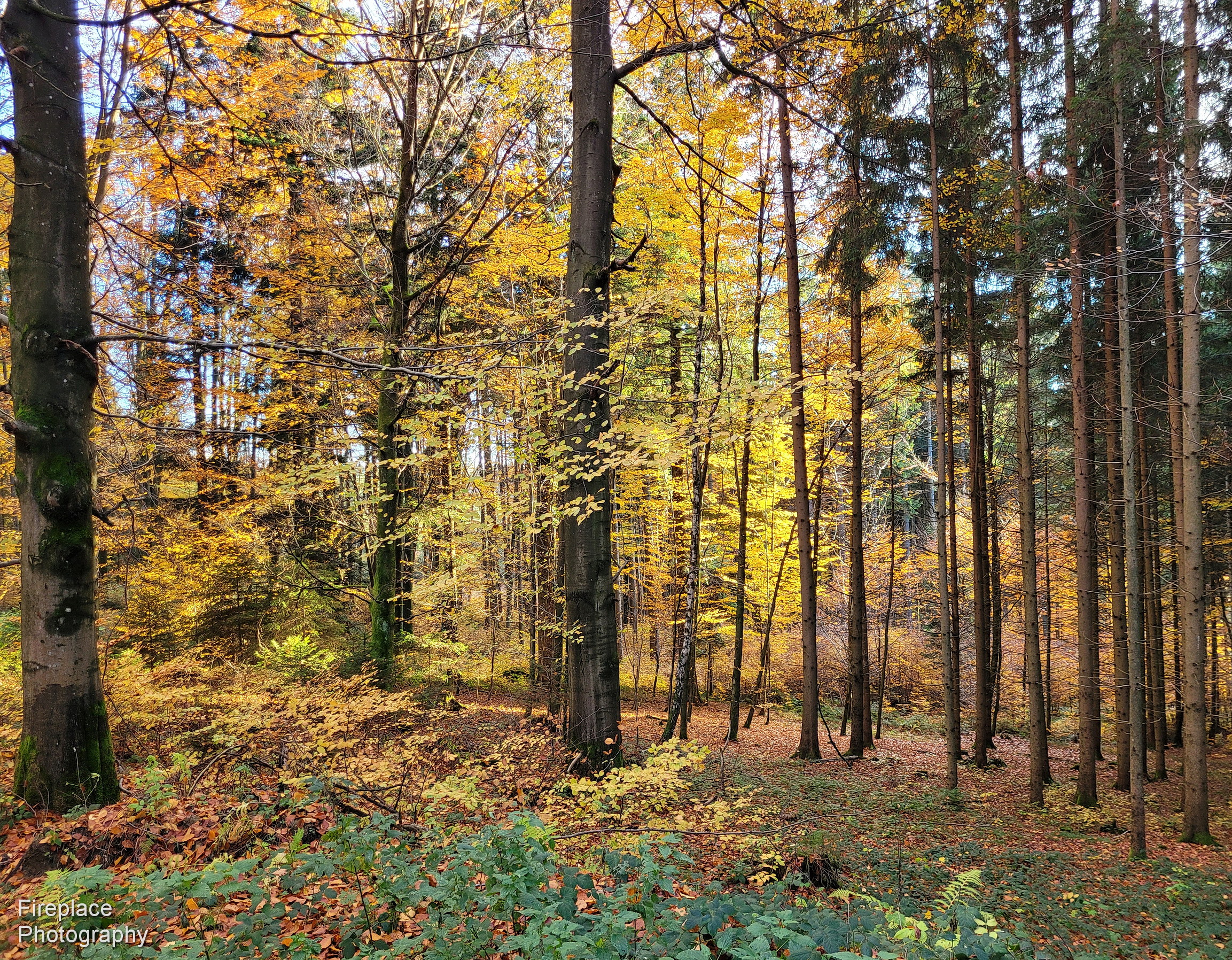 And the bright orange autumn forest in the foreground brightens the image and adds some colour and contrast, not to mention more depth.