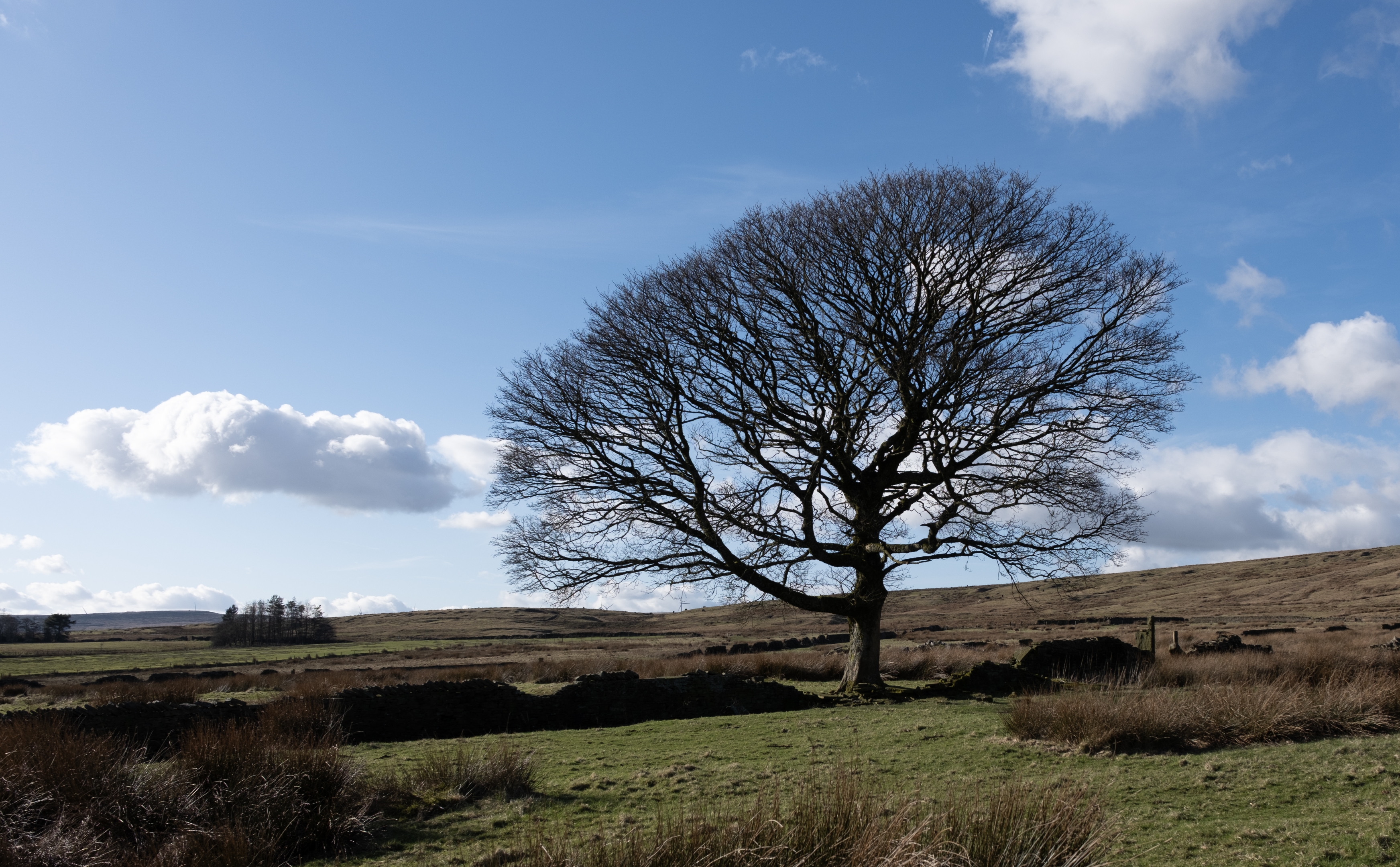 A superb composition. All the weight on the left is offset by sun on the tree on the right.