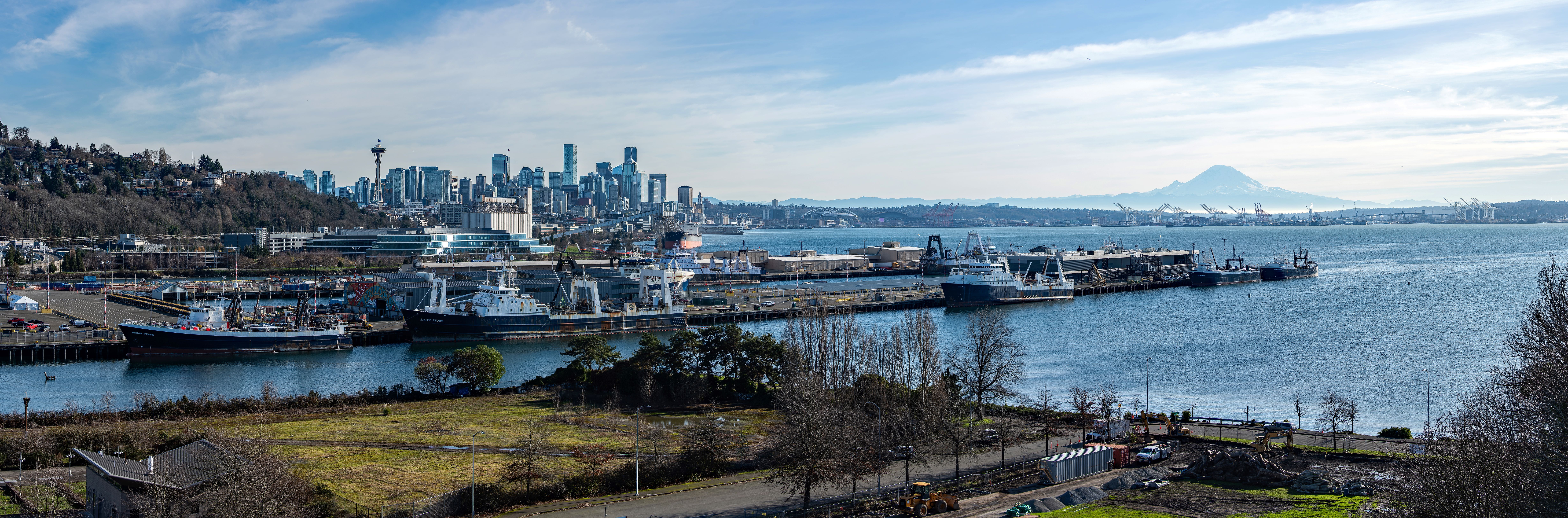 View from the Magnolia Bridge - (I believe it is officially called the Garfield Street Bridge.) This view is looking southeast. A stitch of 8 images (portrait). A nice sunny January day (Friday 16-JAN-26). I had a business meeting in the morning which wrapped-up at noon. Since I had a little bit of time to spare, I decided to drive over to this location and give it a try. The mid-day light isn't optimal, but the sun is at a lower angle in the winter, so that helps.