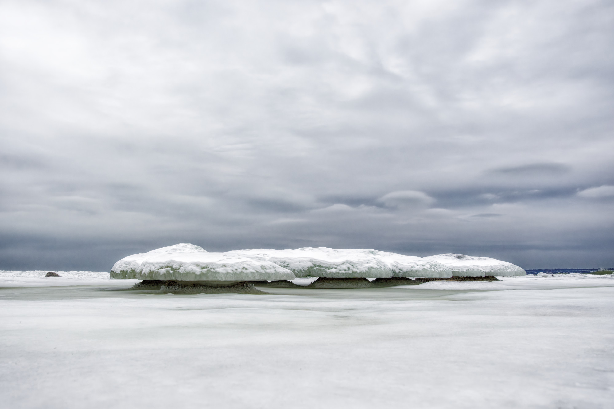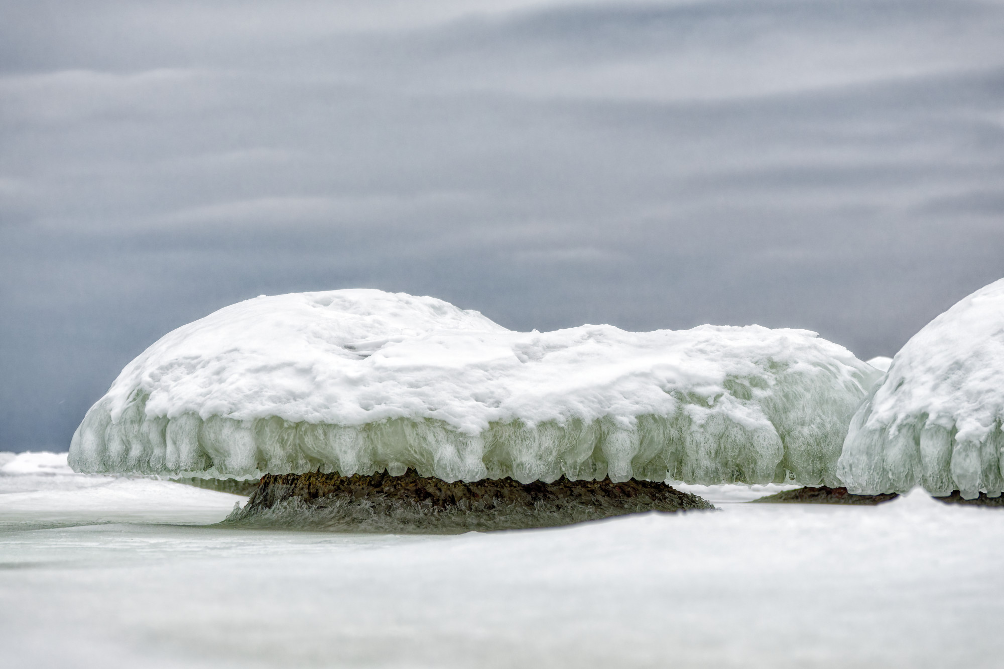 The ice and snow covered rocks look quite "otherworldly"