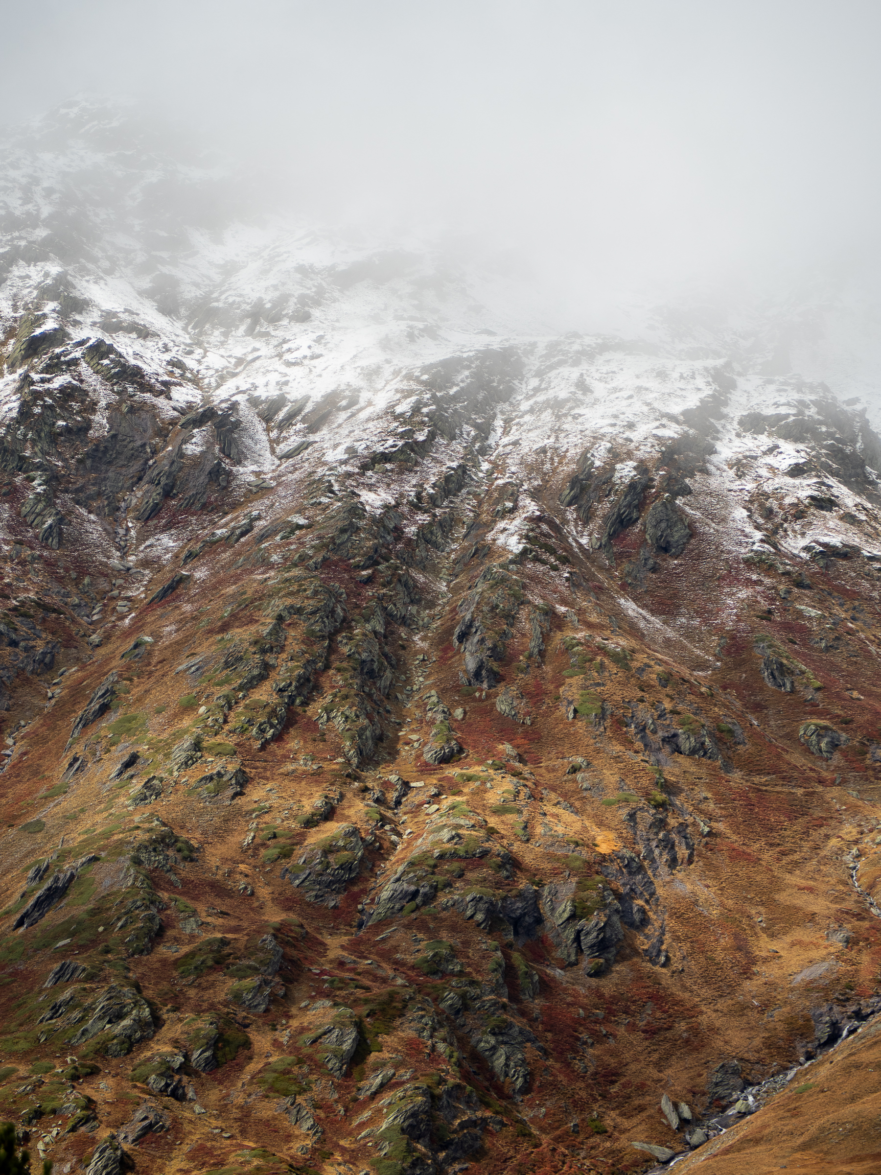 I enjoy the textures and colours of mountainsides in autumn/winter illuminated by the low angle light.