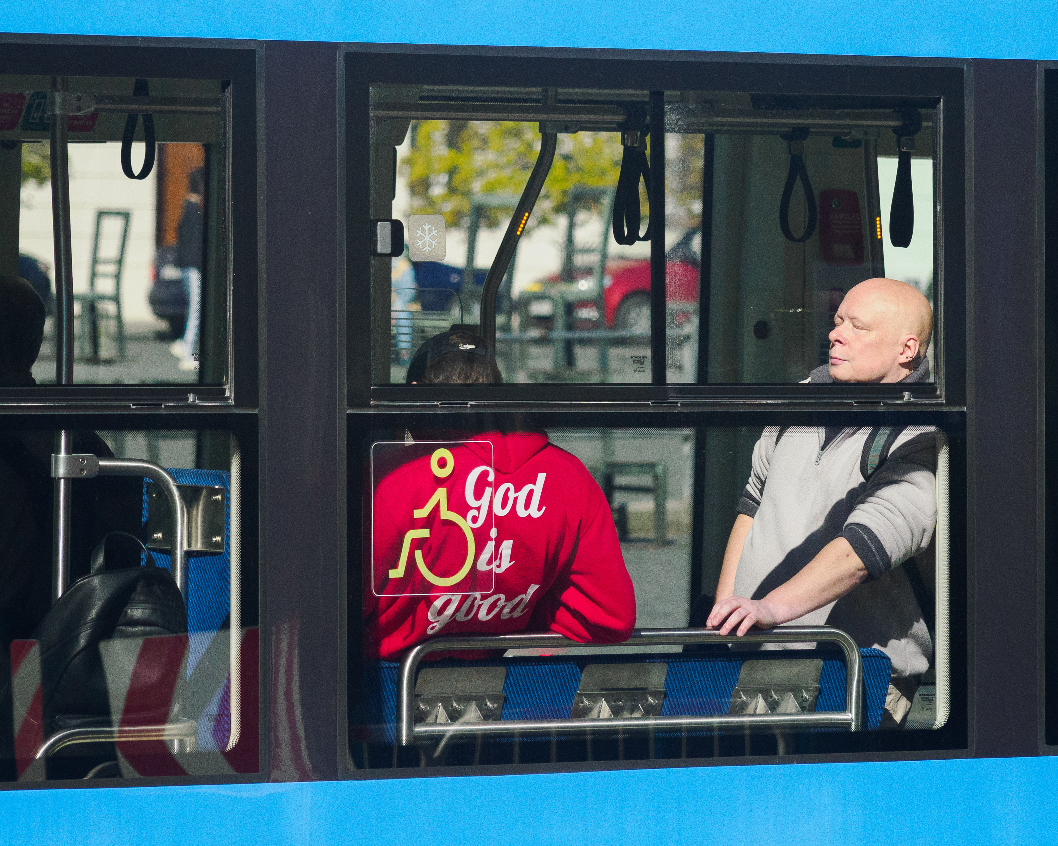 That shirt in the center of the frame certainly draws attention, but I especially like the chill out moment of the passenger on the right...