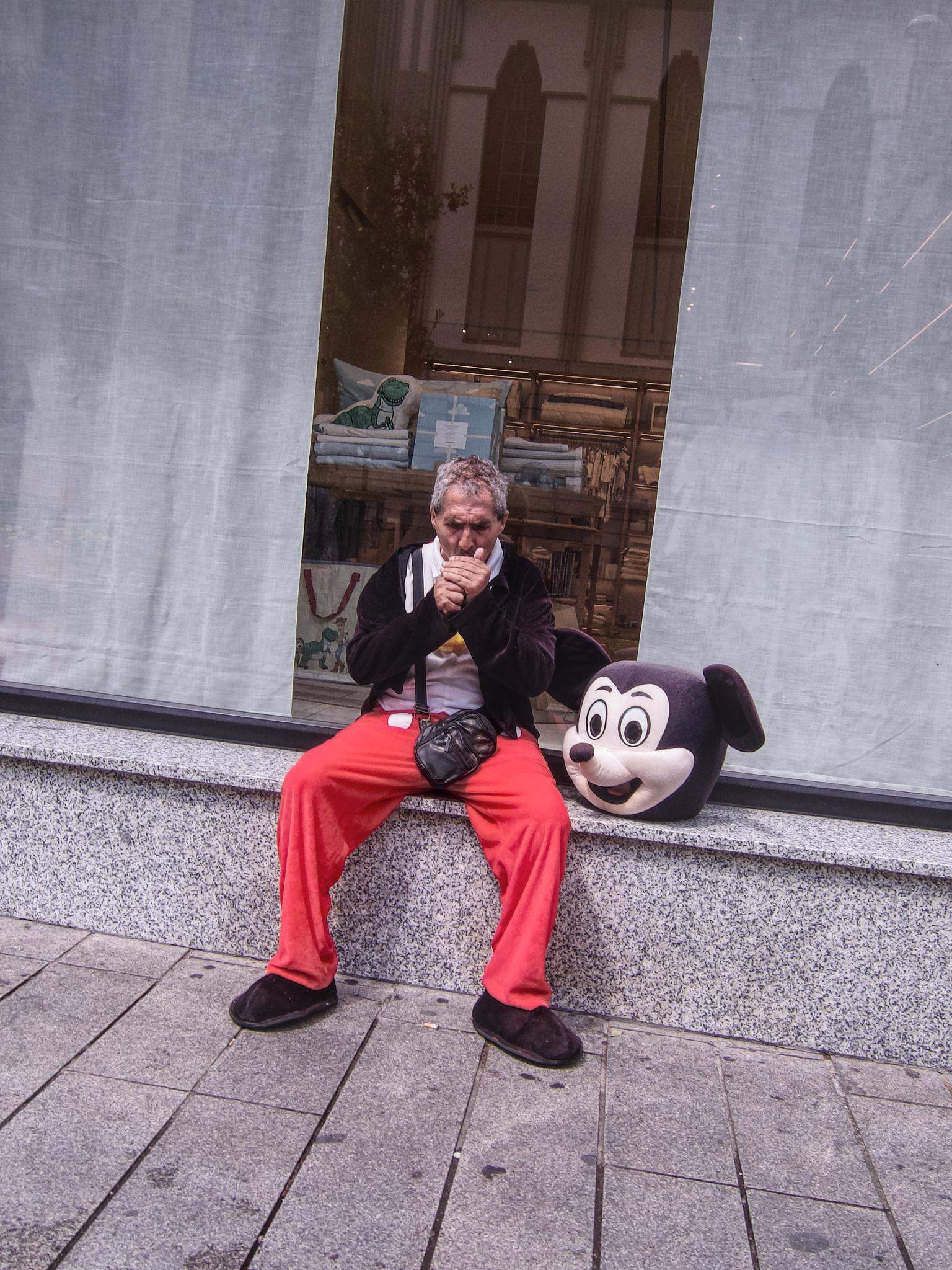 I do not do street photography any more, but sometimes something catches my eye. This is a drastic crop of an iPhone shot I made in town. I posted the full set on its own thread. I guess that set was not any good, or too delicate a subject.