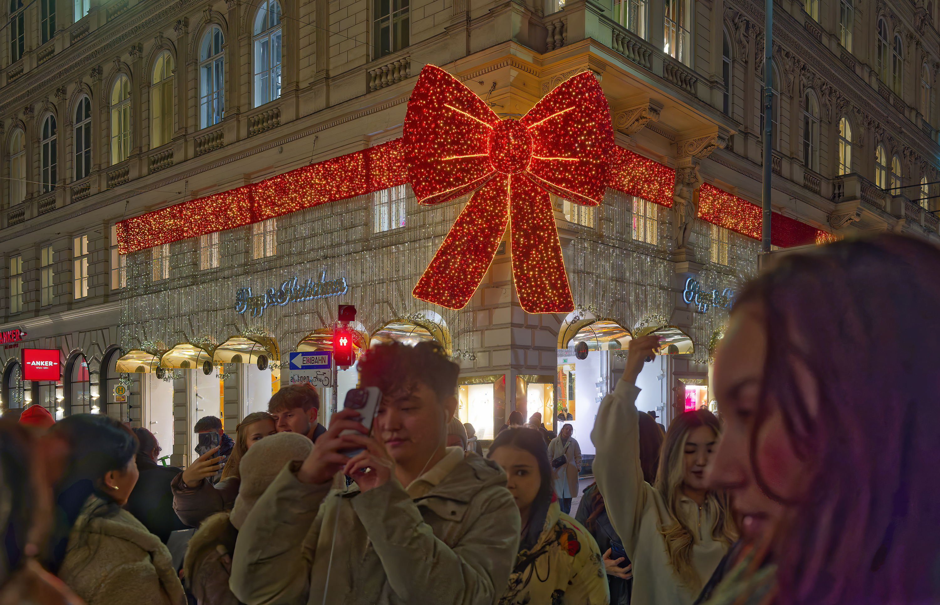 The story behind this picture of Christmas decorations on a shop on the other side of the street from the Vienna Opera is that yougsters have been taking selfies while standing in the middle of a zebra crossing with the traffic lights against them. Not only did this irritate drivers; but police have been handng out €30 fines for this dangerous habit. I couldnt get close enough to take a better photo, but I think the police have made their point!