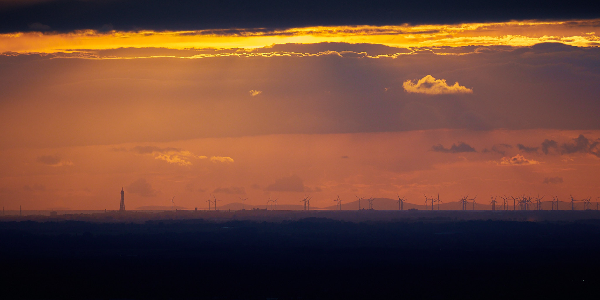 Yep, the Irish Sea is full of the things these days. Here's a sunset shot I took from the moors on a much clearer night back in July last year. This has the distinctive shape of Blackpool Tower on the left, with the offshore wind farm close to Barrow-In-Furness. The hills in the distance are actually the Isle of Man.