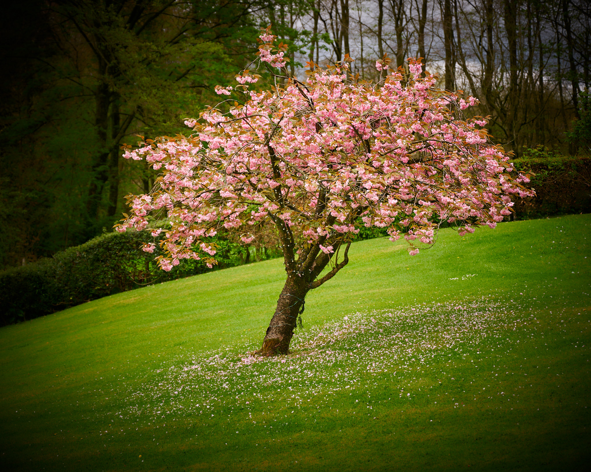 I thought this tree looked great when I spotted it on Saturday, but the added dusting of fallen blossom beneath it today really set it off.