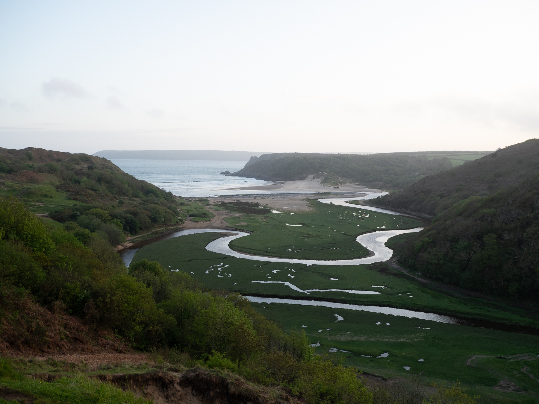 Evening high tide at Three Cliffs Bay
