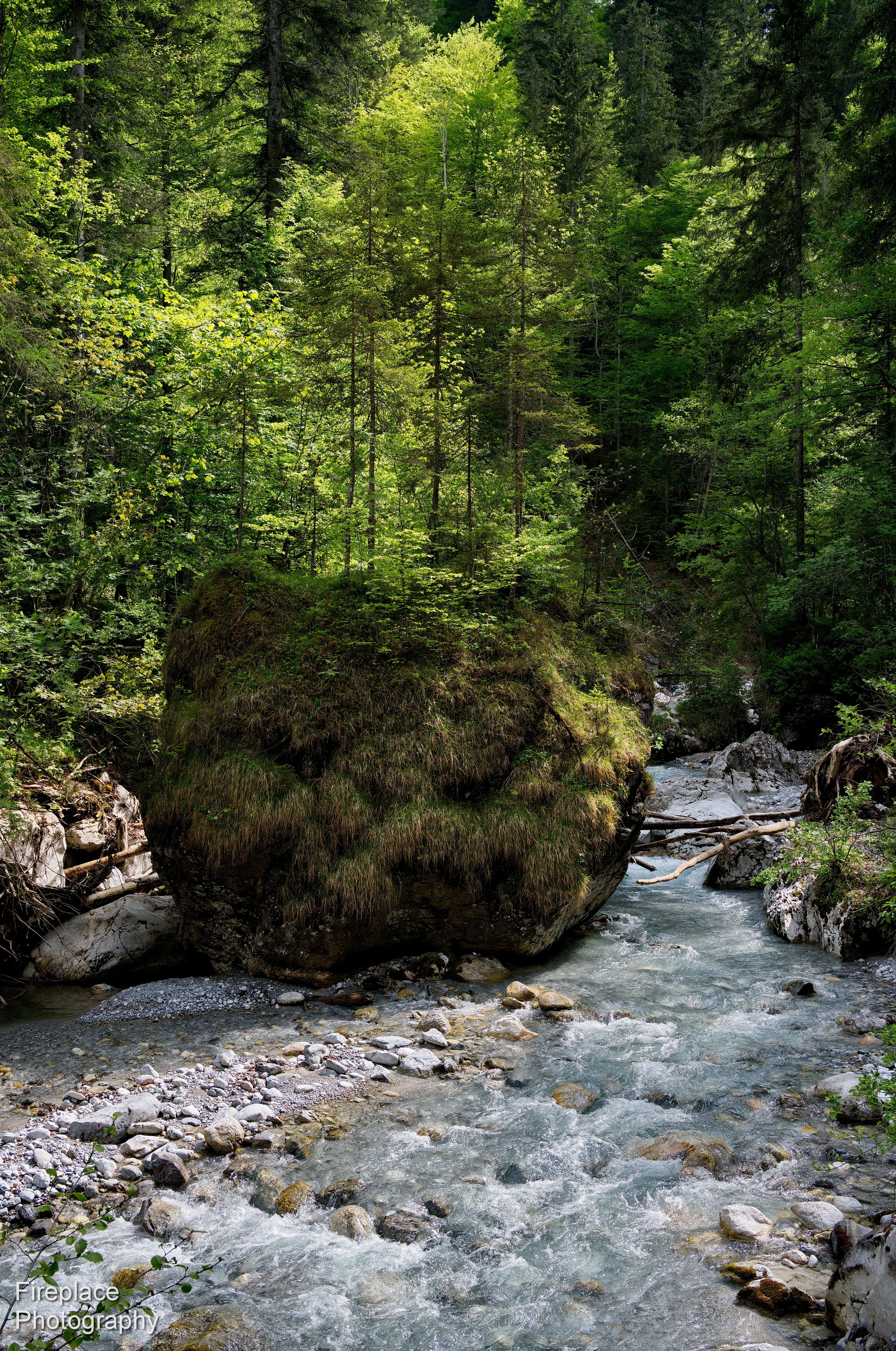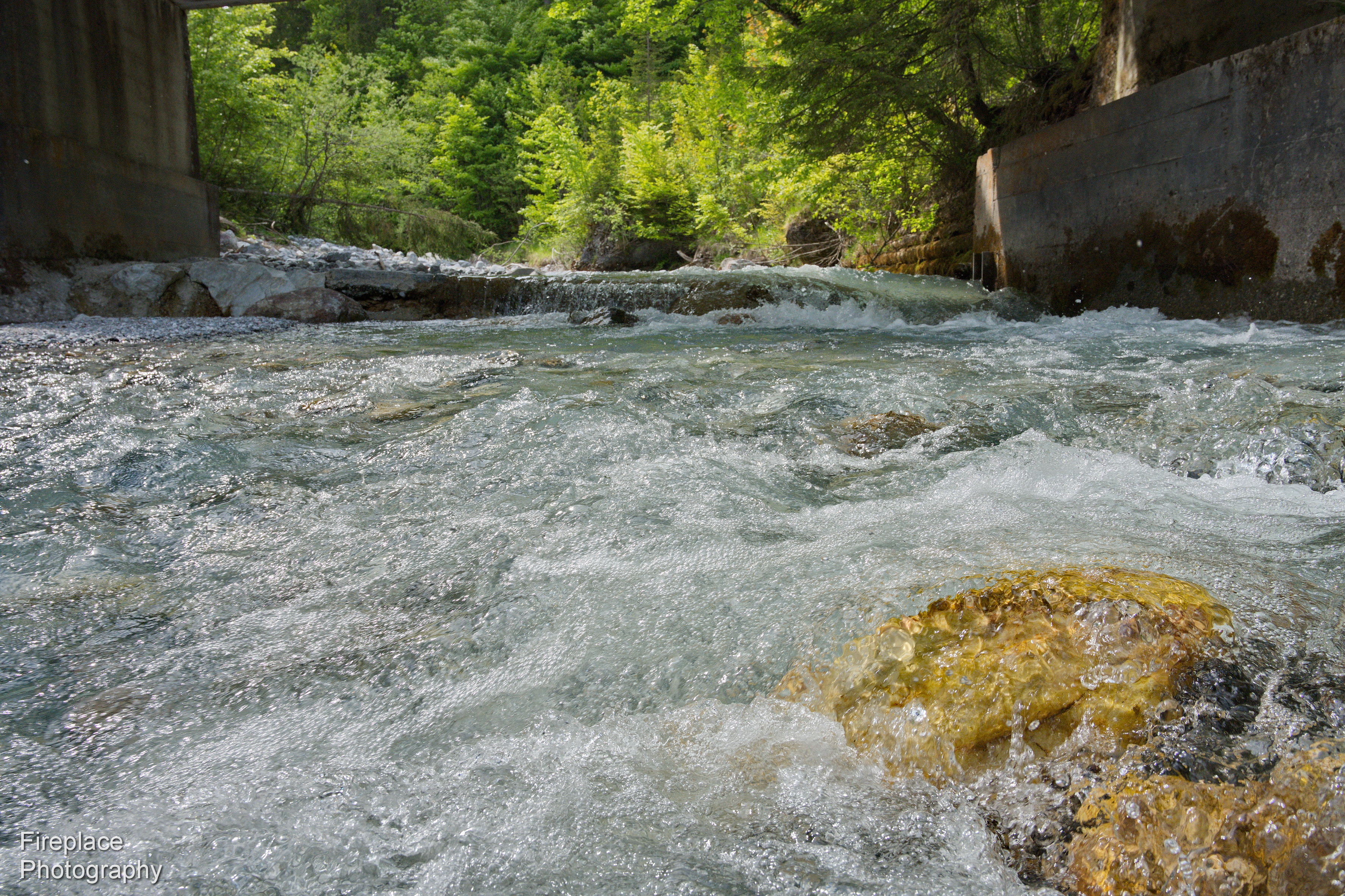 After getting out of woods and crossing bridge there is narrow path along small river.