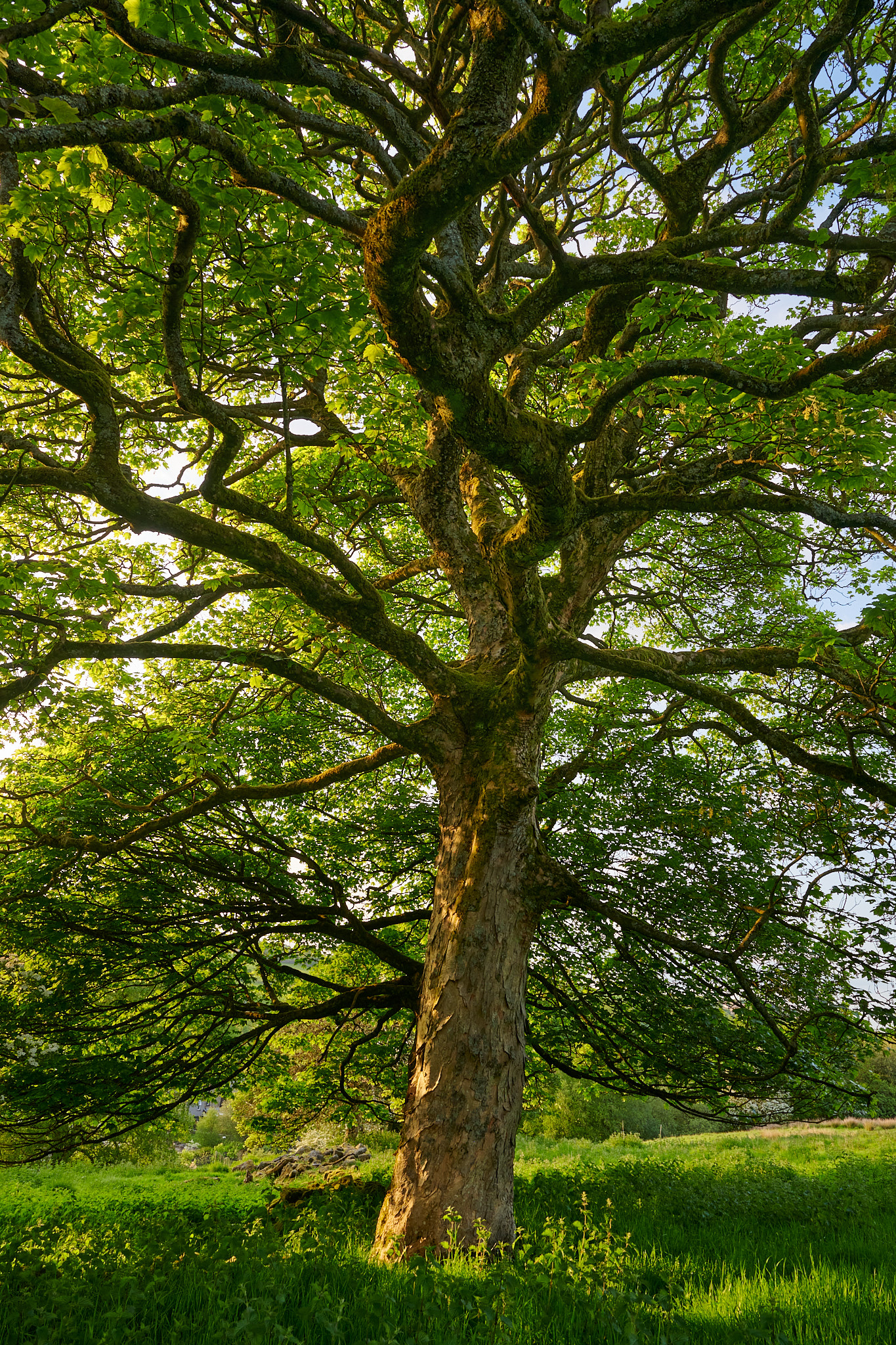The path on the other side of the stile seen in the previous image leads past this rather splendid Sycamore tree. I was initially attracted to its patterned bark, gently side lit by the sinking sun, but once I'd stepped beneath its sprawling canopy I was regretting my decision to not pack the 14-30 as its writhing branch structure was incredible, but impossible to fit into the frame with the 24-70. In the end I had to crouch as low as I could and approximately frame the shot using the LCD on the back of the Z7 that unfortunately does not tilt in any useful way for portrait orientated photography. Maybe splurging on a Z8 is the way forward? My knees would certainly thank me for it, although I'm not sure a more articulated screen and the ability to display a horizon and histogram at the same time (the only features that would significantly help with my use case, well the rolling shutter free(ish) video too if I ever get my finger out in that direction and start producing videos again) is worth the price of admission.