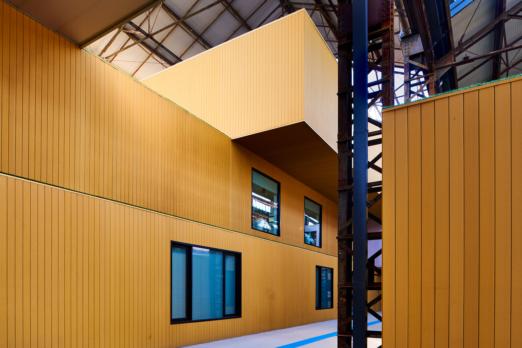 I had a wander around the new repurposing of the old industrial sheds. I am sure the old steel structures will outlive the sandwich panels and plasterboard ticky tacky boxes that look good right now because they are still new. Still I had fun with this different for me, Architectural subject.