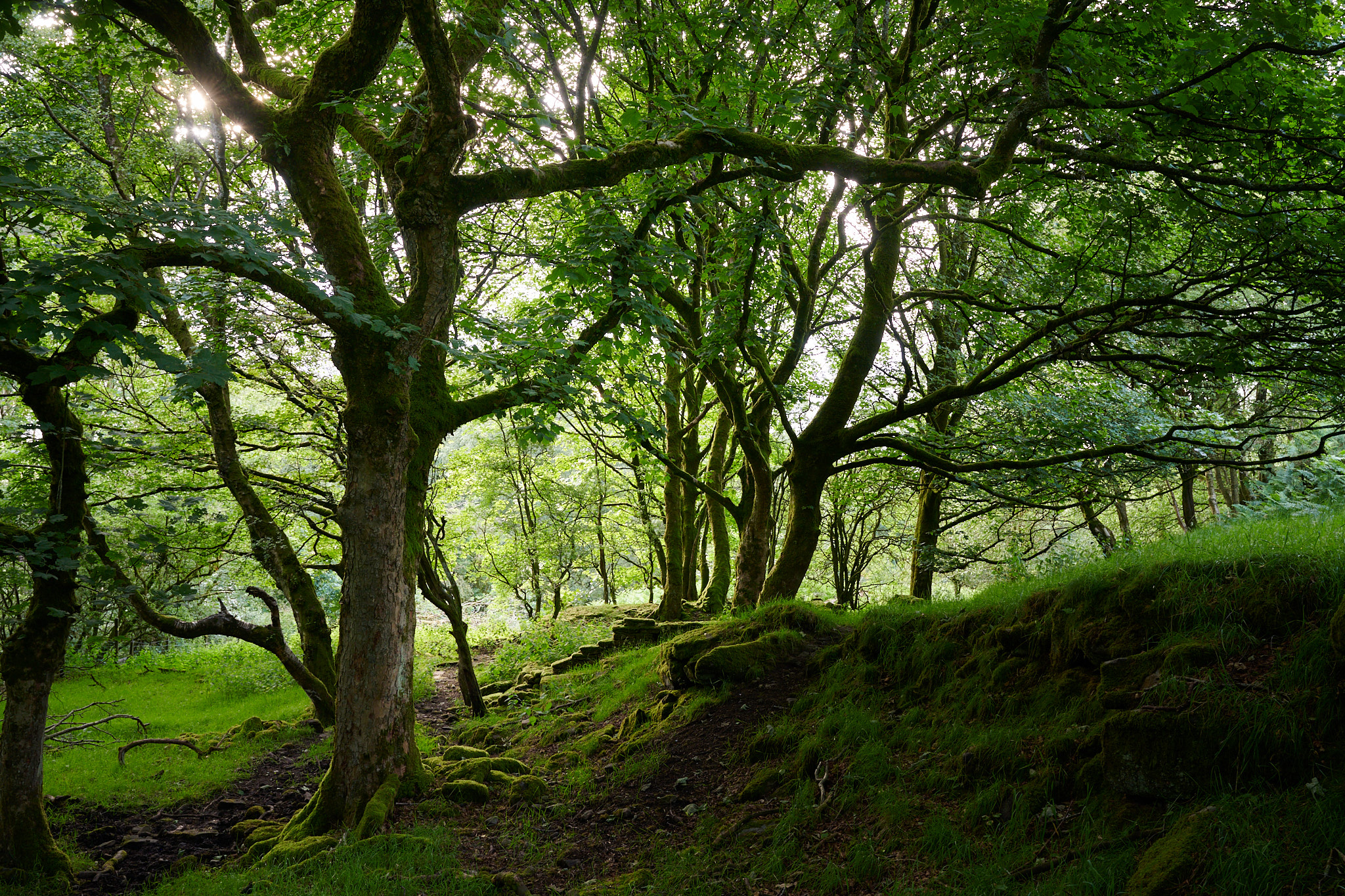 As I was distracted with the trees overhead, I missed the path leading off Well Lane towards Cocker's Folly and instead ended up climbing a fair bit higher onto the moors than I'd intended. Not wishing to just retrace my steps back down the lane, I instead took the next stile to my left and followed a path running back downhill through the wooded glade that runs along the Northern edge of Well Lane, this would eventually connect with the path I'd originally intended to take. As I followed the path, it took me past a set of mossy covered ruins hidden amongst the trees. I've no idea what these once were, but they are shown as unlabelled buildings on the 1888 OS map, so they've been there for quite some time.