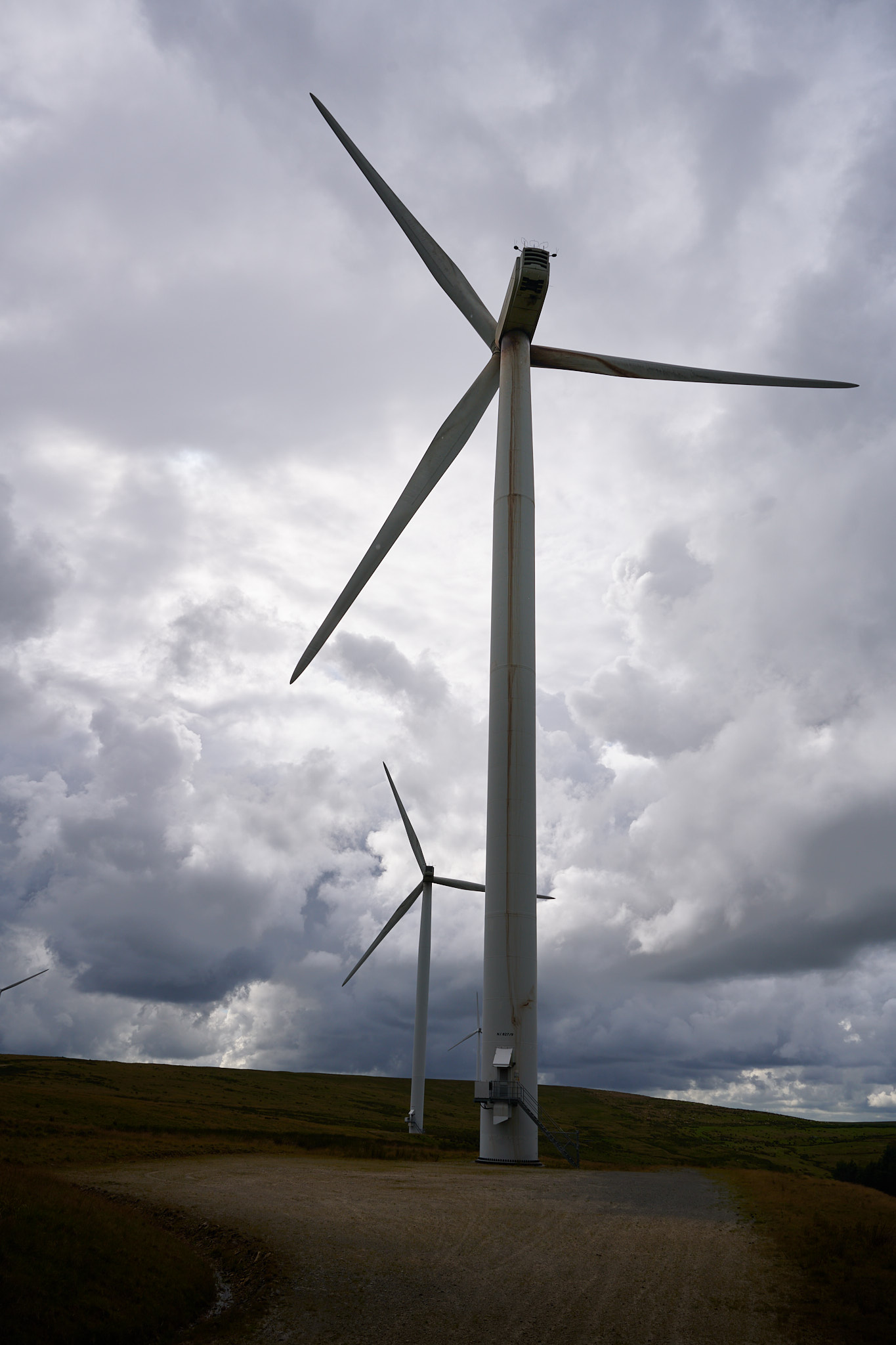I was intrigued by the rusty mark running all the way down the central column of this turbine on Flower Scar Hill, so I took this shot to record it and take a closer look later, but the dramatic sky made for a more interesting picture than I'd originally expected.