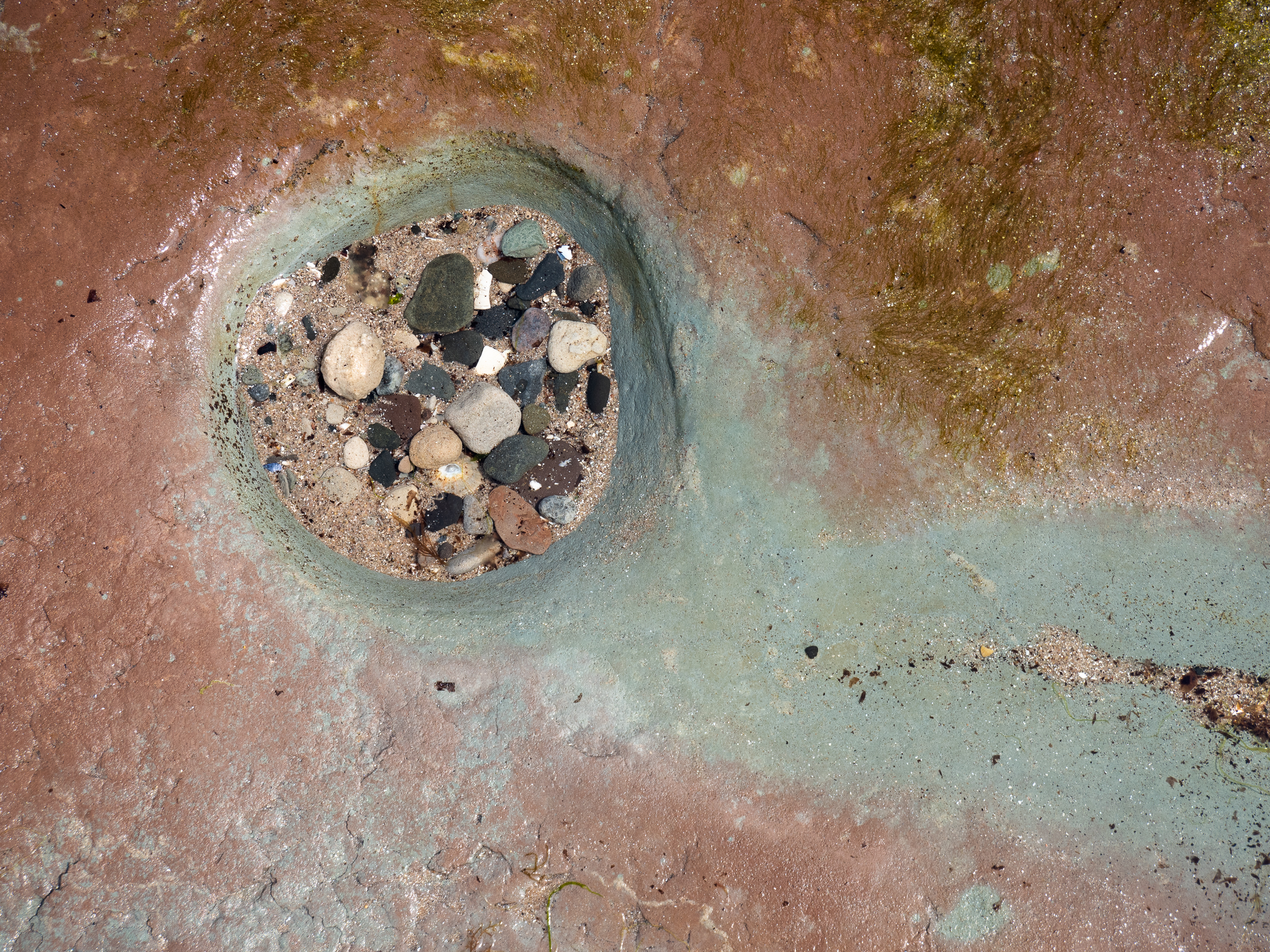 The first is quite intriguing with that almost perfect round hole in the flat slab. I'm wondering what material the slab is made from and where the hole and the colours came from?