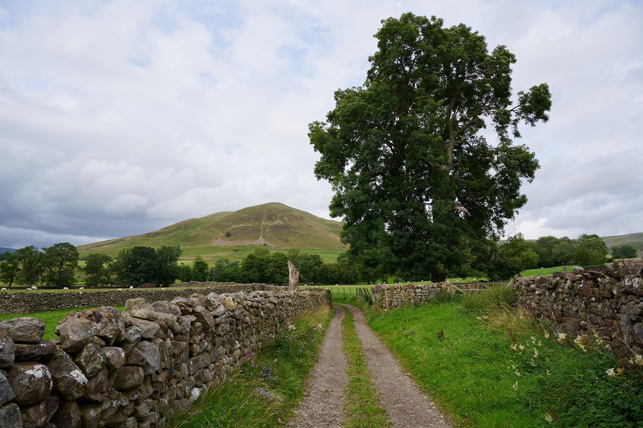 My first sighting of Dufton Pike, that little pyramid poking up over the meadow.