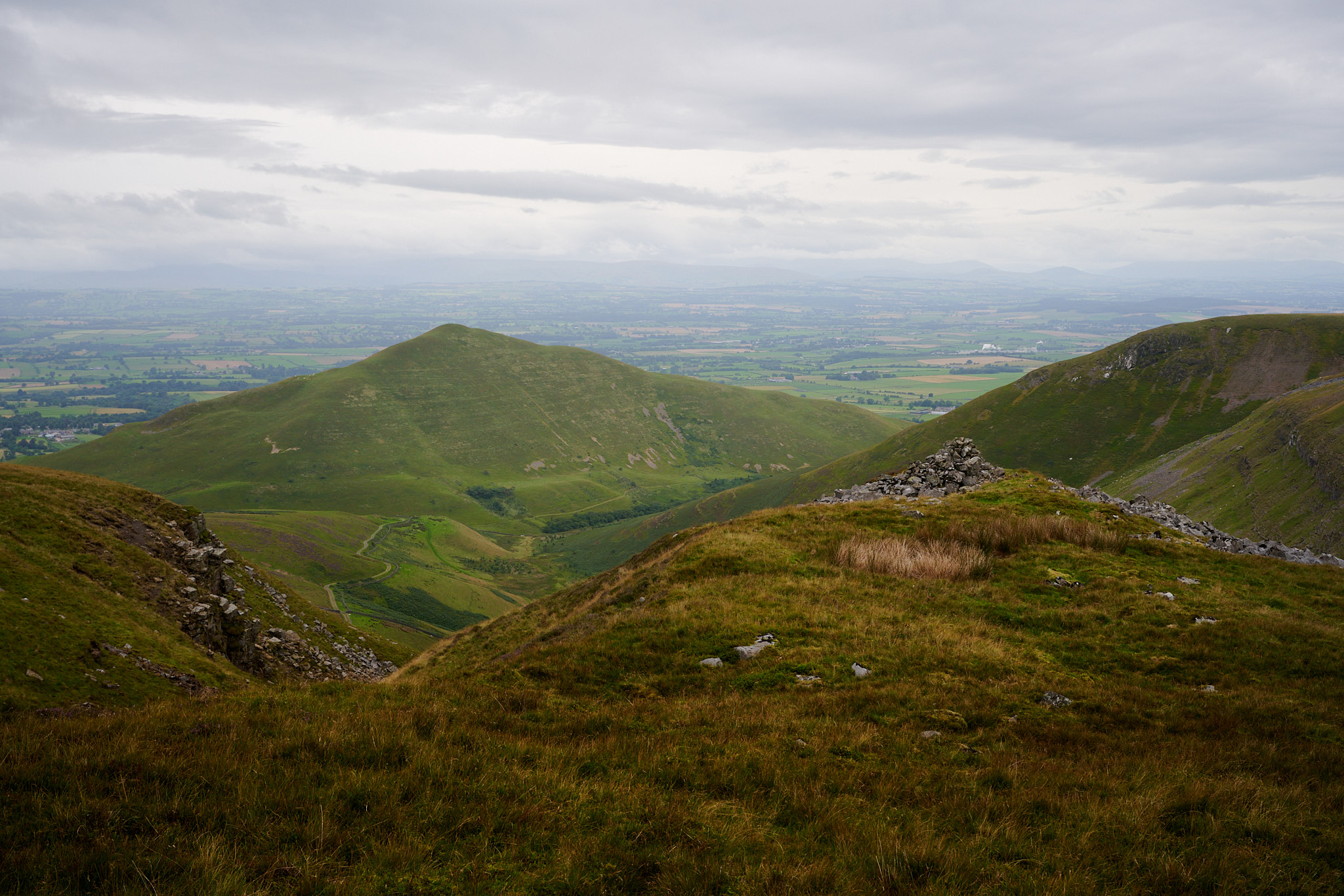 This was taken just below White Rake. You can see the foot of Dufton Pike on the left and Brownber Hill on the right. On the distant horizon, just left of centre is Great Mell Fell, with it's underachieving sibling Little Mell Fell to its left, while right of centre, with its head in the clouds stands Blencathra.