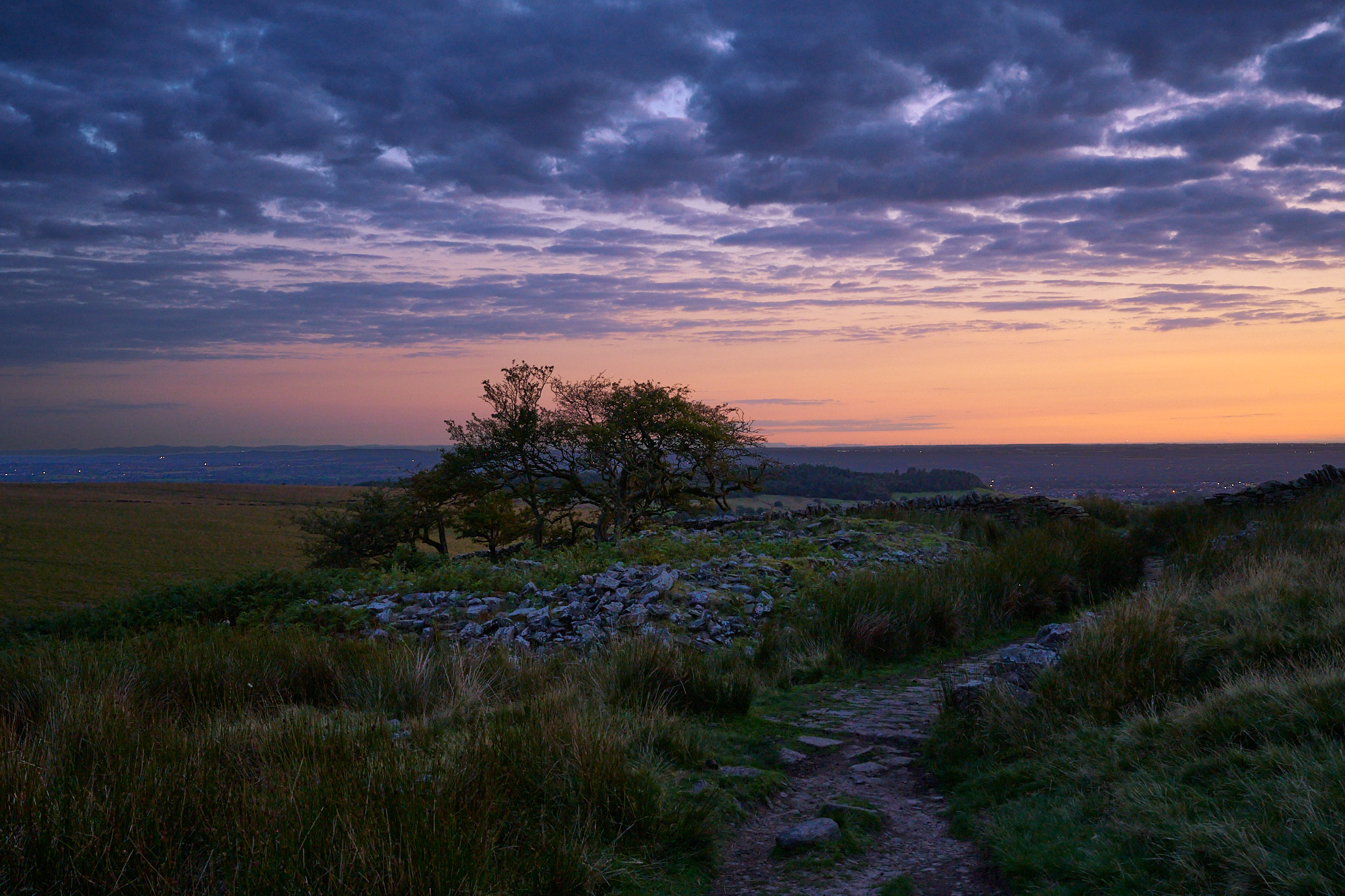 By the time I reached Coppice Stile it was pretty dark. I was still being assaulted by midges, so I didn't have much time to plan this shot or experiment with different exposures. In order to get something vaguely hand holdable I underexposed it quite a lot and brought the foreground back up in C1P. I think the foreground could do with being a touch brighter, but I'm pushing it as it is and it starts to look unnatural against the sky if brought up too much. There used to be a nice composition here from the other side of the wall, but a recent initiative to put up information signs at some of these lost farms has ruined that due to the placement of the huge sign. I've actually cloned it out here, but that wouldn't be an option from the other side of the wall, so that's a shame, but I quite like this vantage point, so all is not lost under the right conditions.