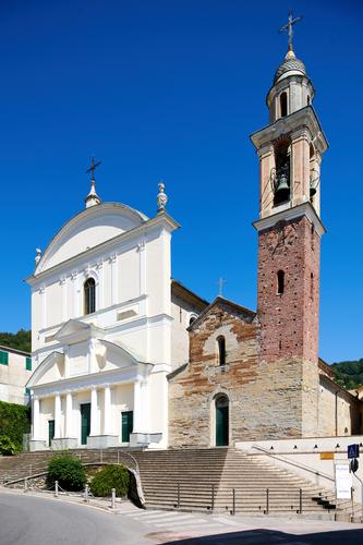 I did one little expedition into the hills behind the coast above Recco, near Genova to the little village of Uscio. I wanted to see a curious little Romanesque Pieve, that sits next to a neo-Baroque monster. In 1893, they wanted to pull the old church down and replace it with a much larger one. There were some protests from the more enlightened members of the population and a compromise was made, the Pieve became a state protected monument, and the new church was built. On my visit the new church was open, but as often happens with monuments in Italy, the old Pieve was shut.