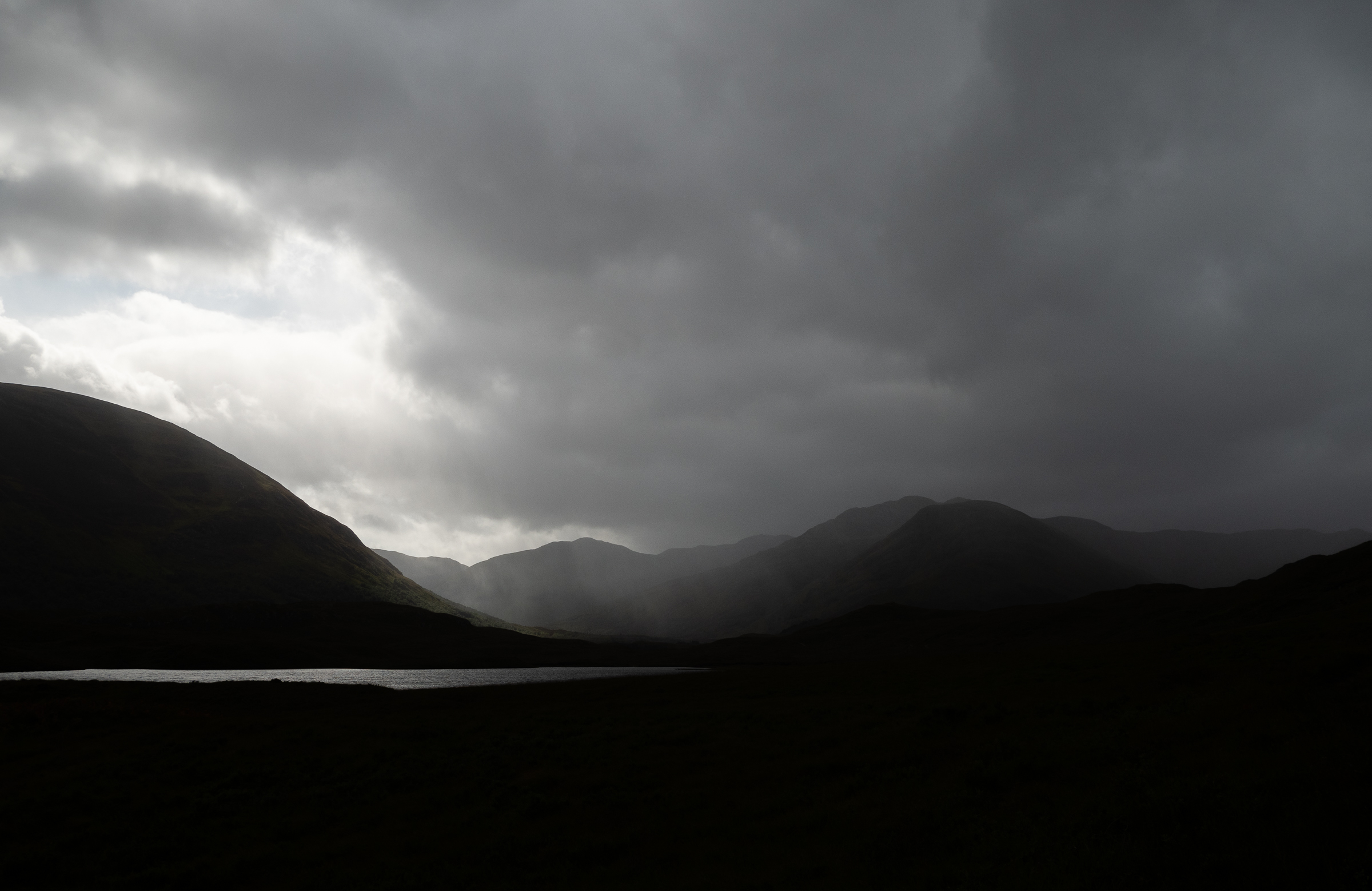 I messed up a little here. I could really have done with a wider shot containing more of the branches above the frame. There was a bit more, but not enough to include without making it look messy, so I've cropped it out. I'm not entirely sure why I framed it like that. The important things I was looking at here was the framing of the mountains beneath the lower branch and the positioning of the trees on the left which seem to be leaning back.