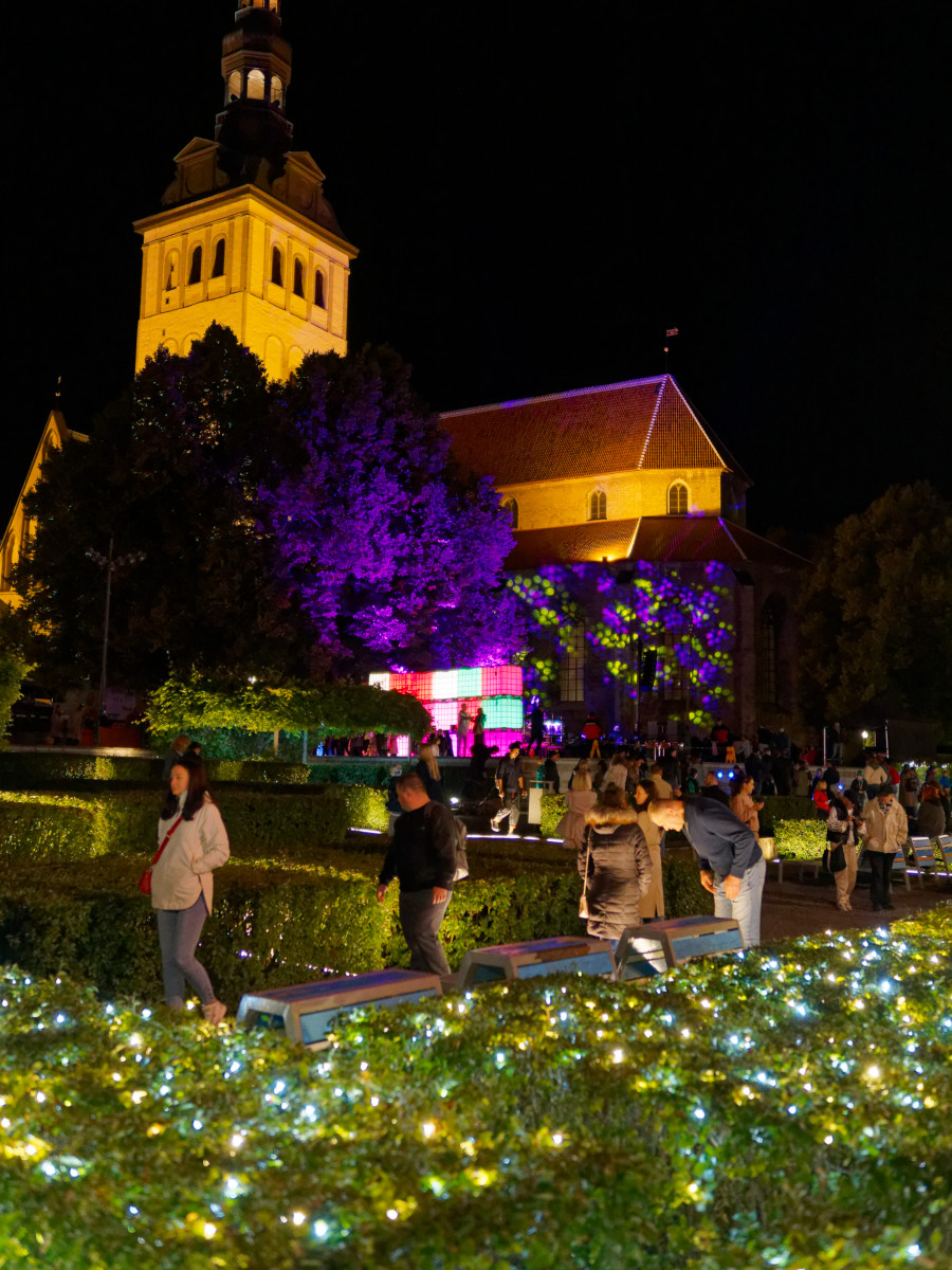 This was light show over weekend in 3 different places to celebrate end of long days and start of long nights, I visited one in old town. This queue is from people going upper part of old town where in Danish King's Garden light show was presented. However, it was filled with people already when I arrived, so I took some pictures of crowd and decided to go lower part of old town in hope that there is less people and this shot was made when I was stopped in my attempt by such crowd. This is Short Leg street, connecting lower and upper part, it's quite steep and narrow street with stairs and if there are people not able to climb stairs fast then such queues appear, especially if there is constant stream of people.
