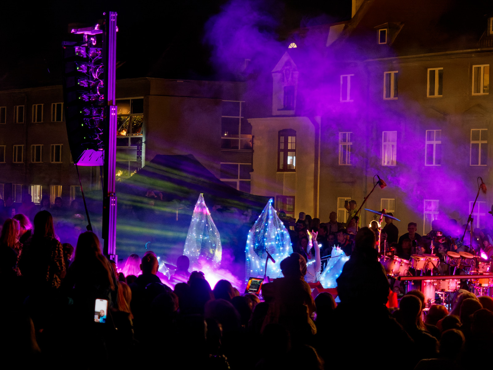 Light dance, also crowded and I did't want to squeeze any closer with my camera, instead I stood on old wall bit back to get better view.