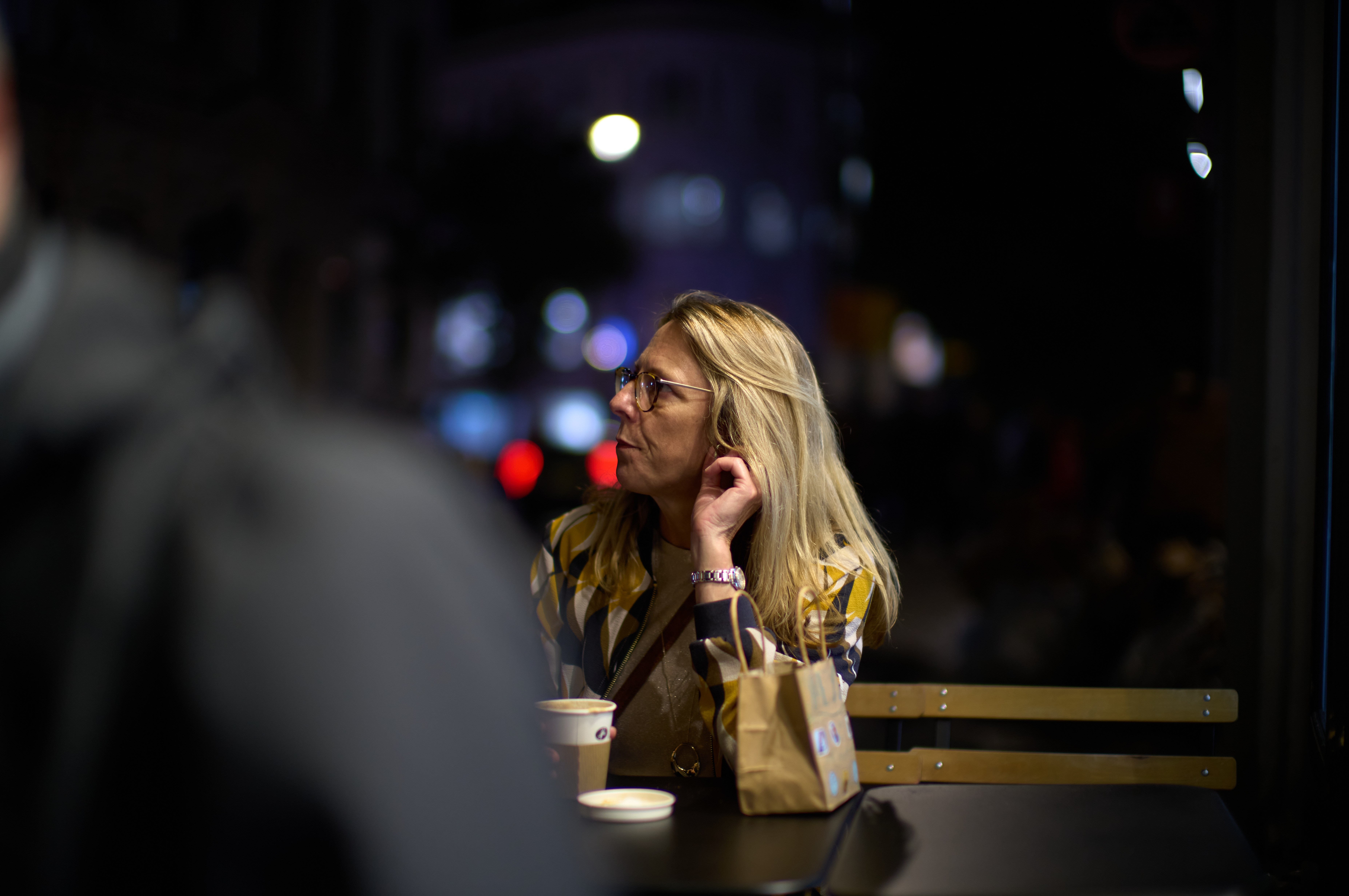 This is the only shot I took with this camera. I met a gentleman in Covent Garden and he suggested that I try his camera. I took this shot while we were having our coffees.I used an EVF for critical focus and it is still not perfect, even though it is f/1.2 and not f/0.95.