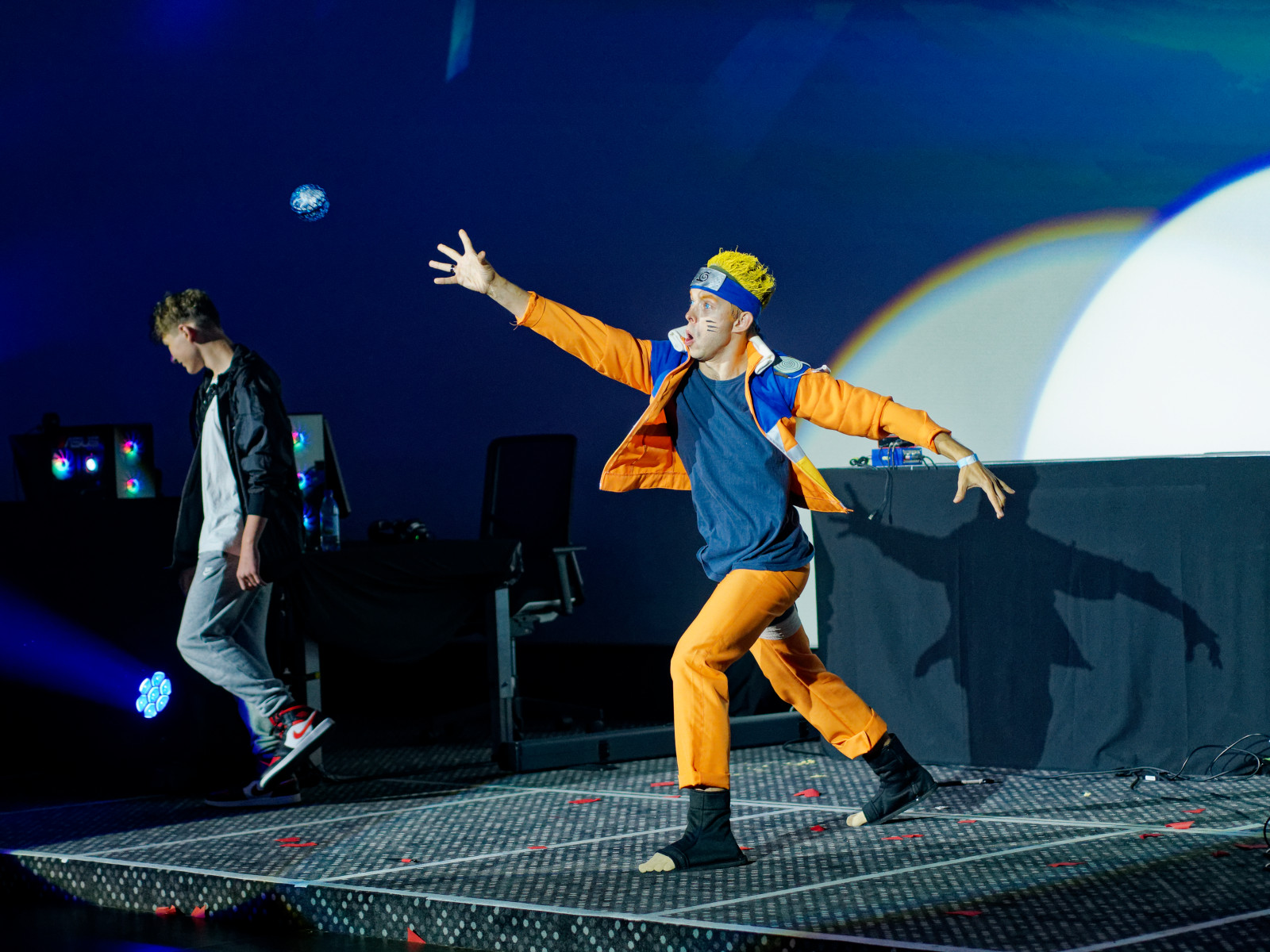 Wrestling. It got pretty wild, with stangulation, smashing laptops against heads, breaking tables with opponent's back, beating "blood" out and swinging black rubbery "doodledoos" :D