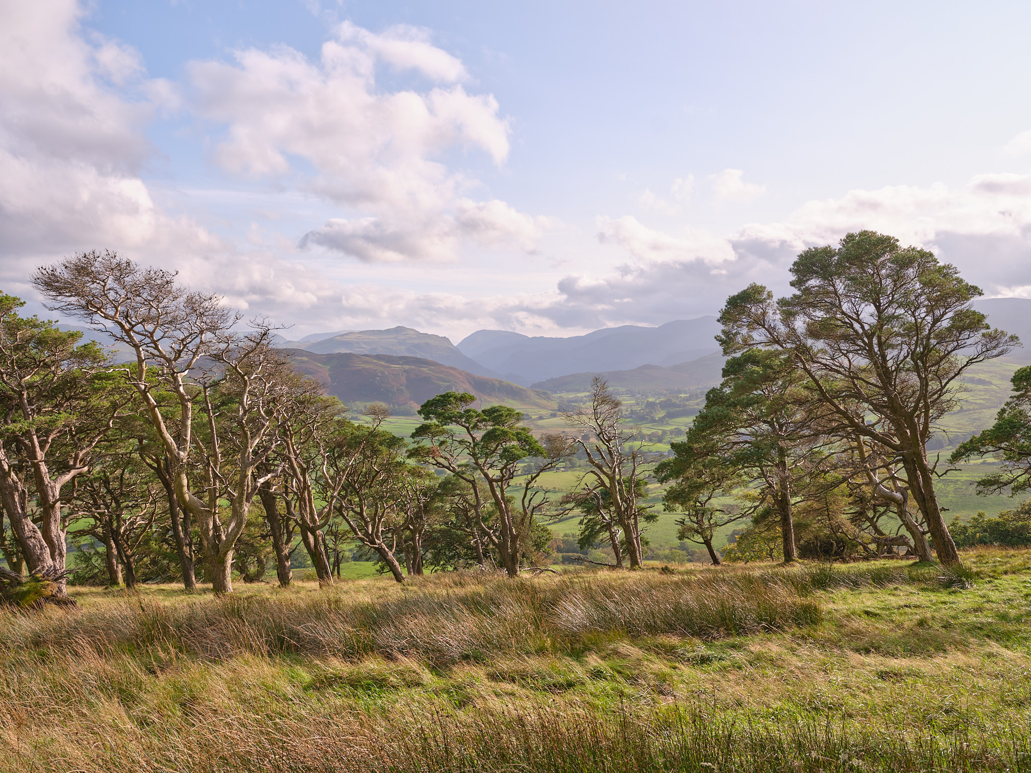 As you get higher up Great Mell Fell, you begin to encounter rows of dead trees, all bent backwards to some extent or other by the high winds that regularly batter this location (some are bent double!).