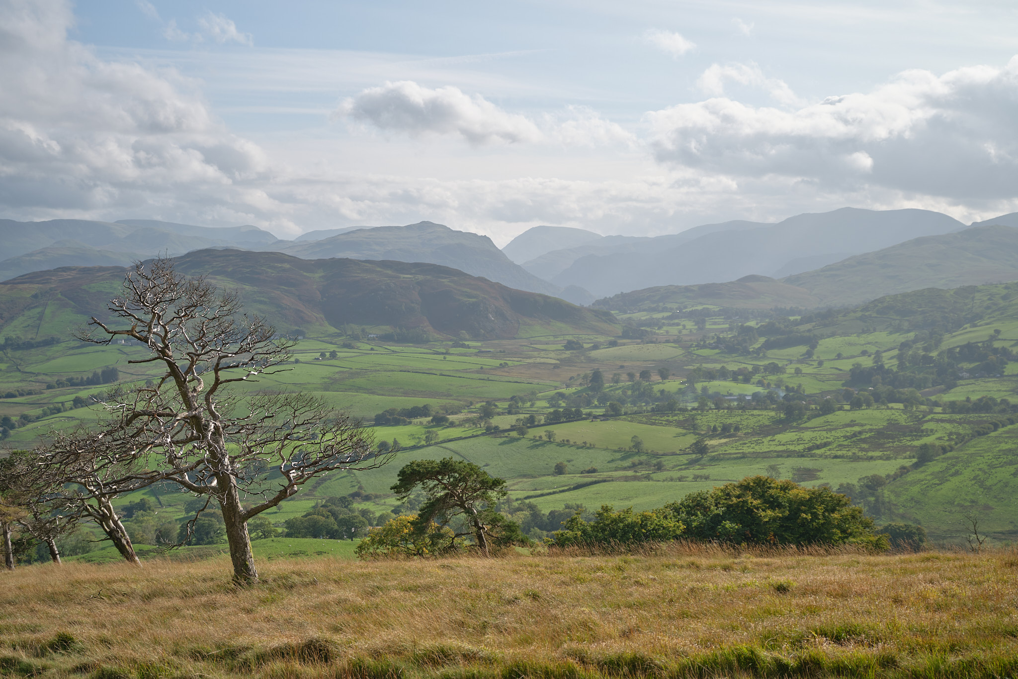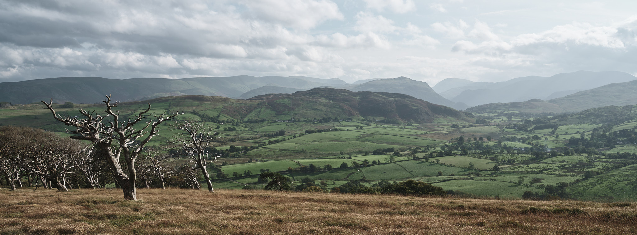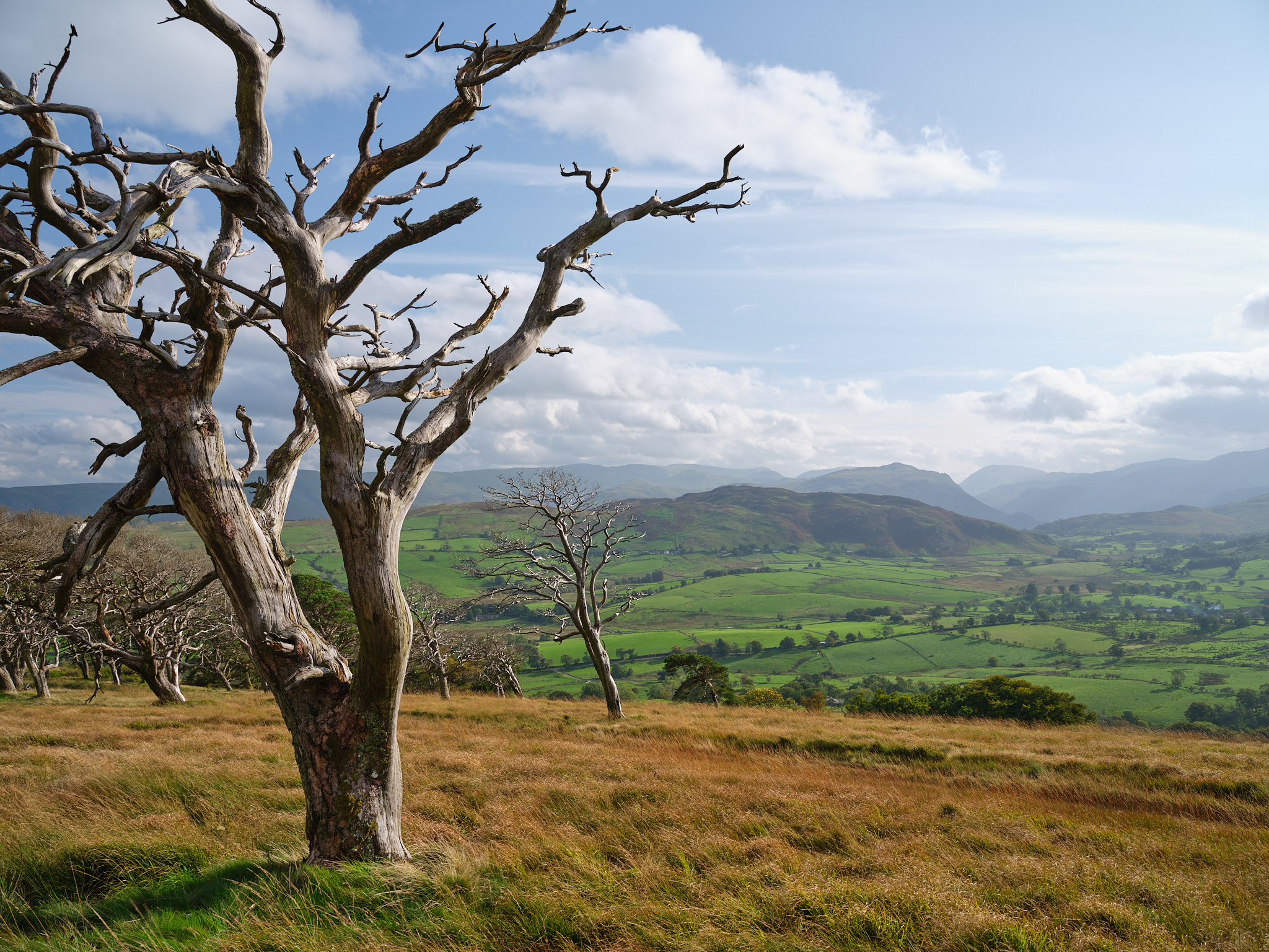 A bit of a face off between the live and dead trees near the summit of Great Mell Fell.