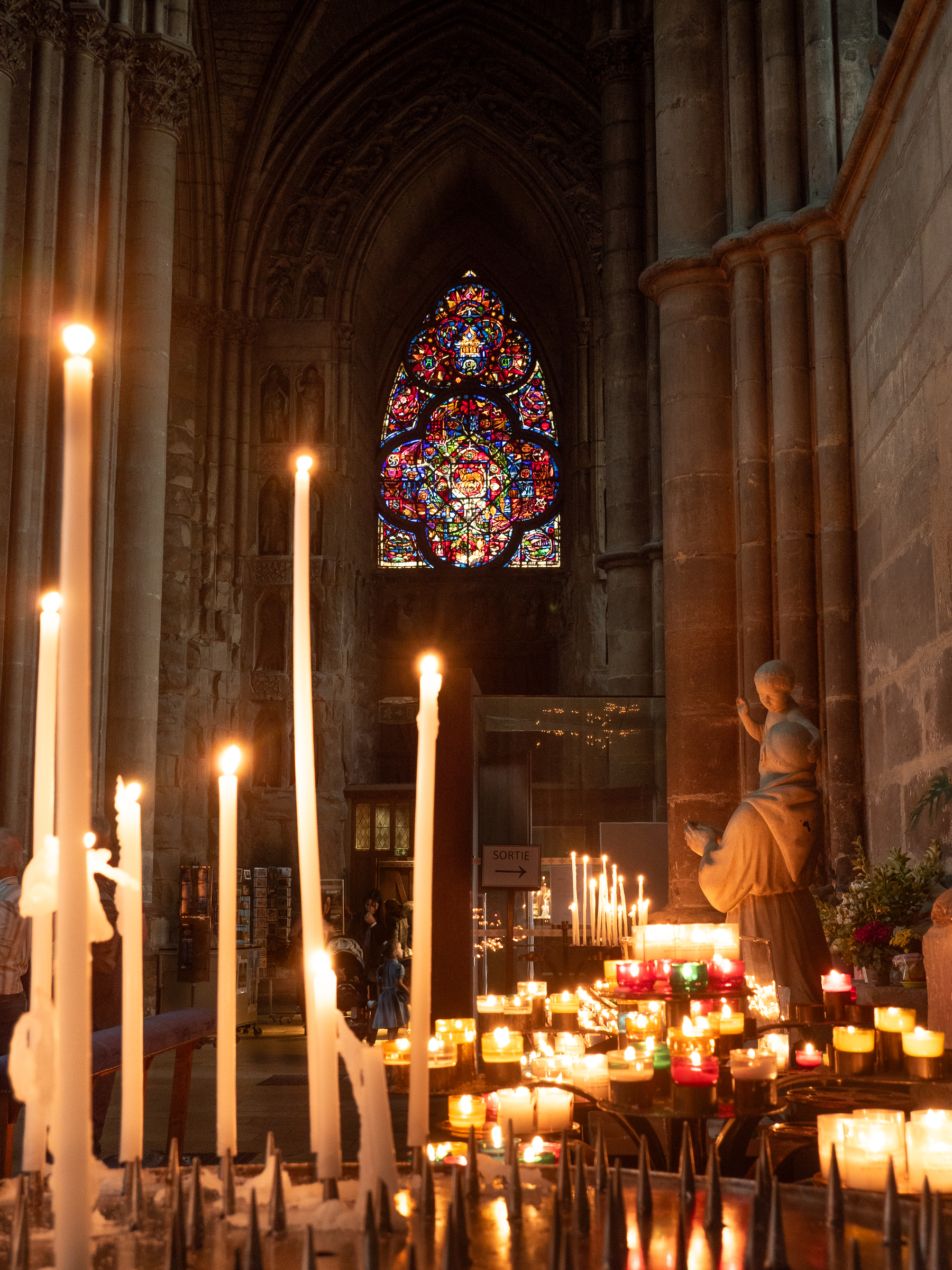 Nigel recently showed some images from the Saint Remi basilica older and more to my taste than the cathedral. This candelabra reminded me of some of the amazing candelabras in turkish mosques.