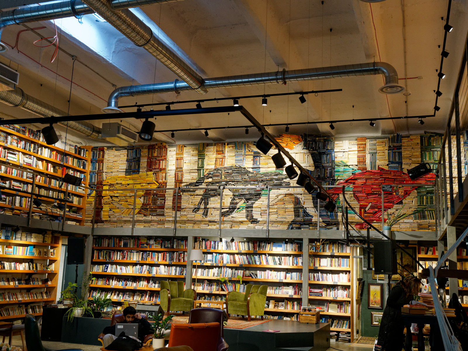This book store looks great. The animals on the walls made from those stacked up books is very clever. Enjoy your deep dive into the treasures you'll find there.