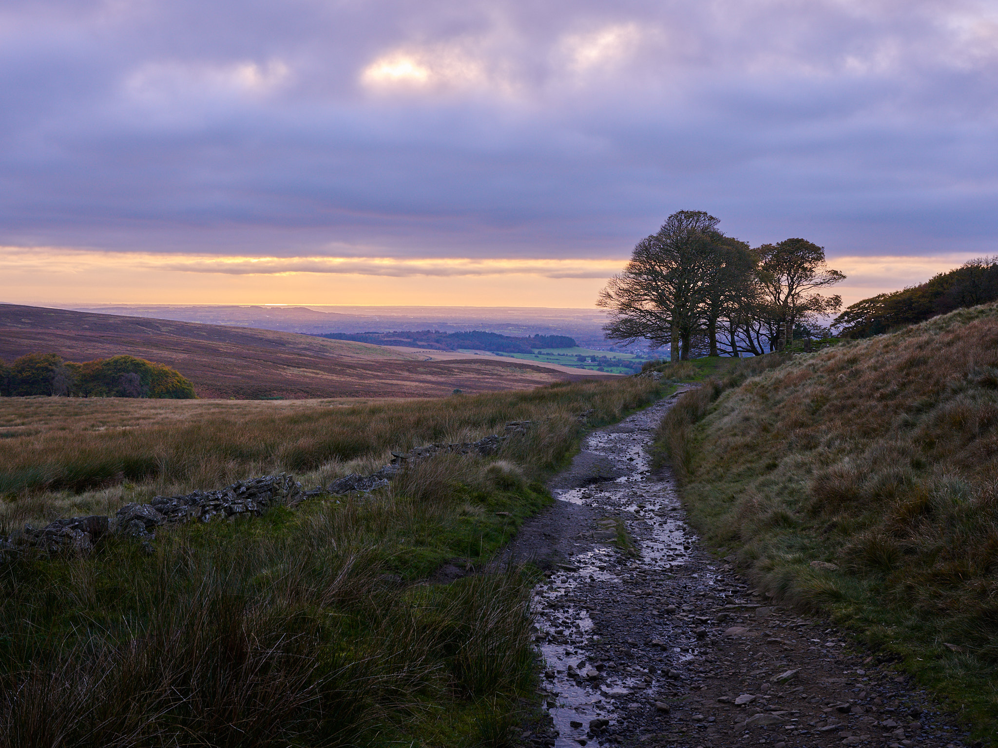 This was taken a little further along the path, showing The Nab in its entirety, with Coppice Stile on the far right. Even from this far back you can still clearly see that sign on the full res image. Anyway, at this point, it looked like something exciting was about to happen with the light, maybe rich orange colours? Crepuscular rays? Nah, dull blue-ish grey is what I was treated to.