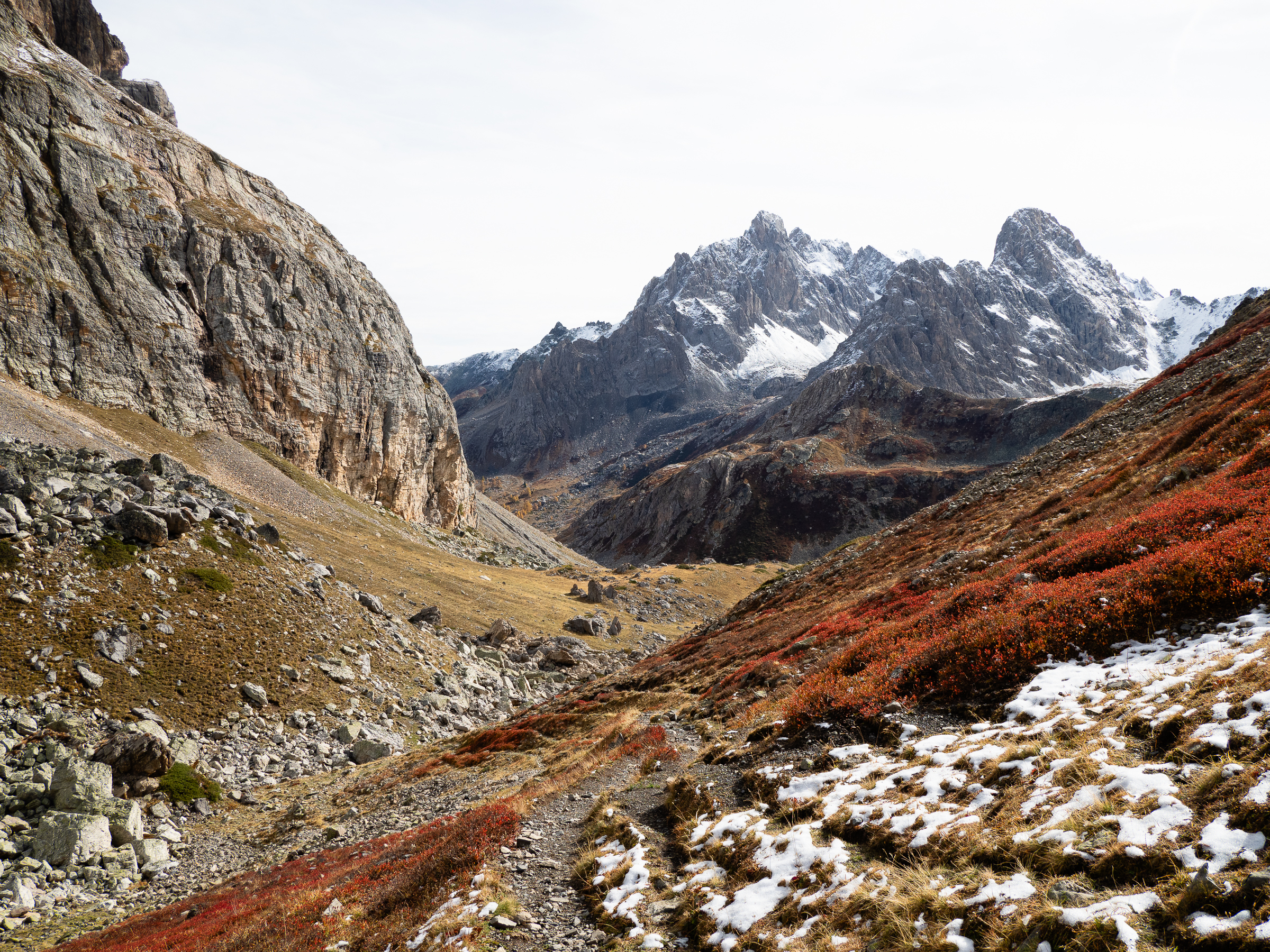 The weather in this little patch of the French Alps has turned towards winter. Several days of rain, punctuated by one glorious autumn day. So we took advantage and hiked up to a favourite high valley. (Altitude about 2500m just above the fresh snowline, starting at 1850m for those who are interested.)