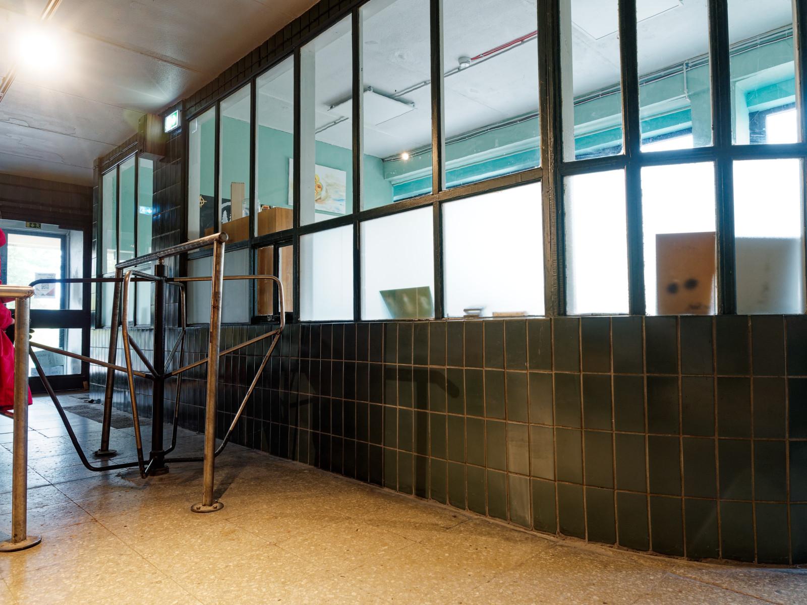 Typical entrance to soviet factory, kerberos-the-gatekeeper was sitting behind glass and denounced those who were late...
