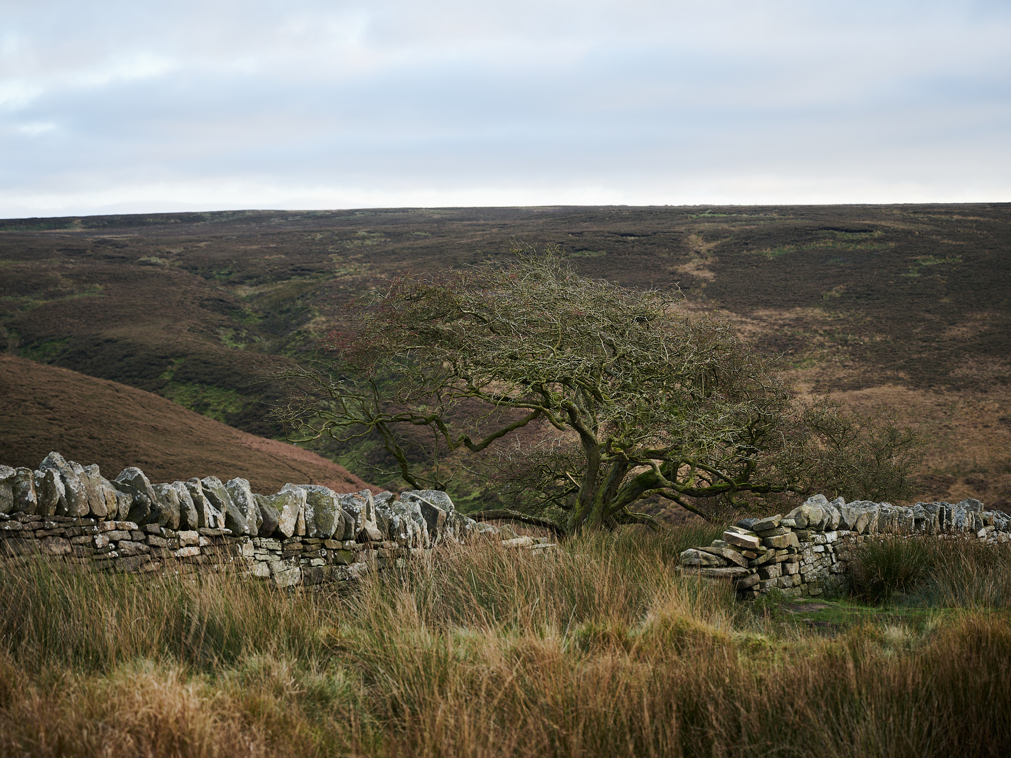 I've long had a favourite shot of Coppice Stile, peering through the gap in the wall, but that viewpoint is now ruined as that massive sign is now dead centre in front of the Hawthorn tree, so I've been experimenting with other views to try and hide the damned thing. This viewpoint isn't too much of a compromise and places the sign out of view behind the wall, but it's not quite as good as the path is hidden and the lower branch is obscured by the wall.